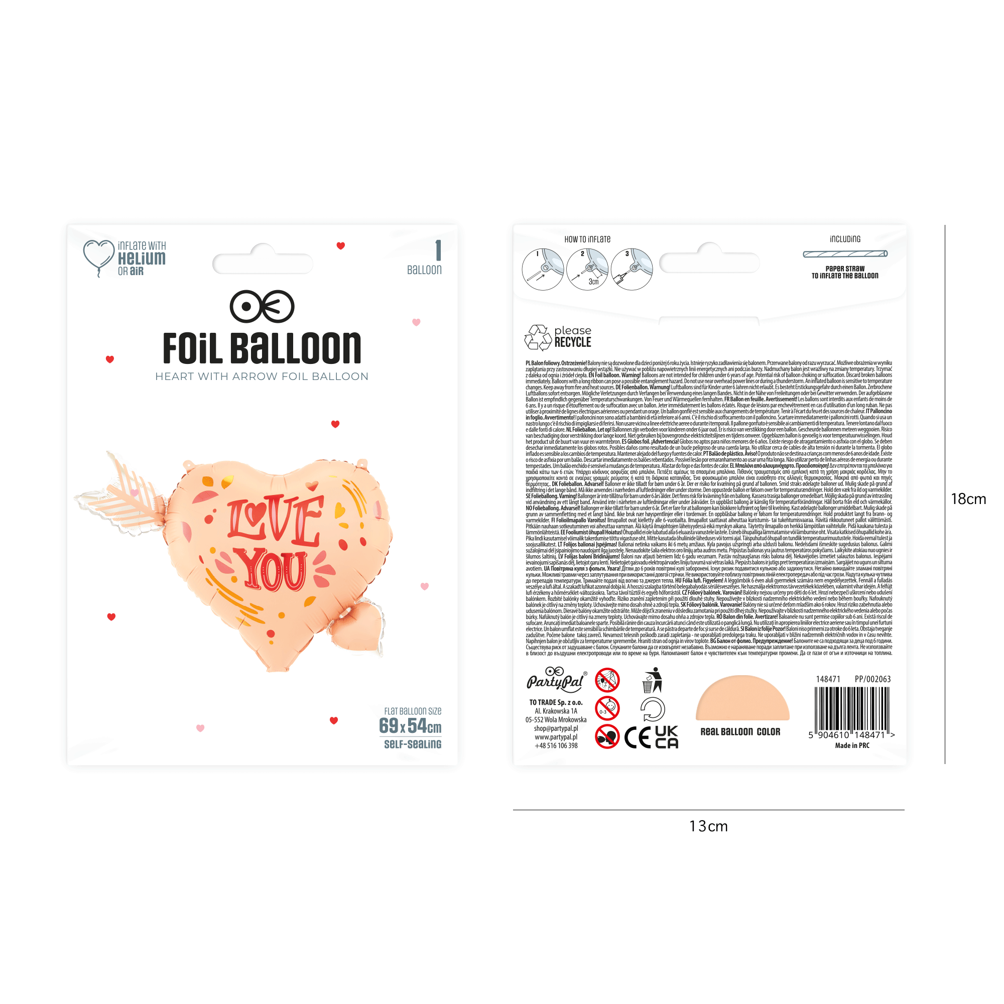 Balon foliowy Serce ze strzałą 69x54cm