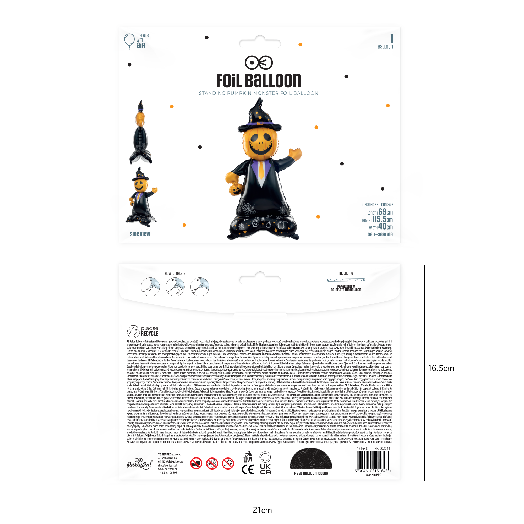 Balon foliowy stojący Pan Dynia Halloween 155cm