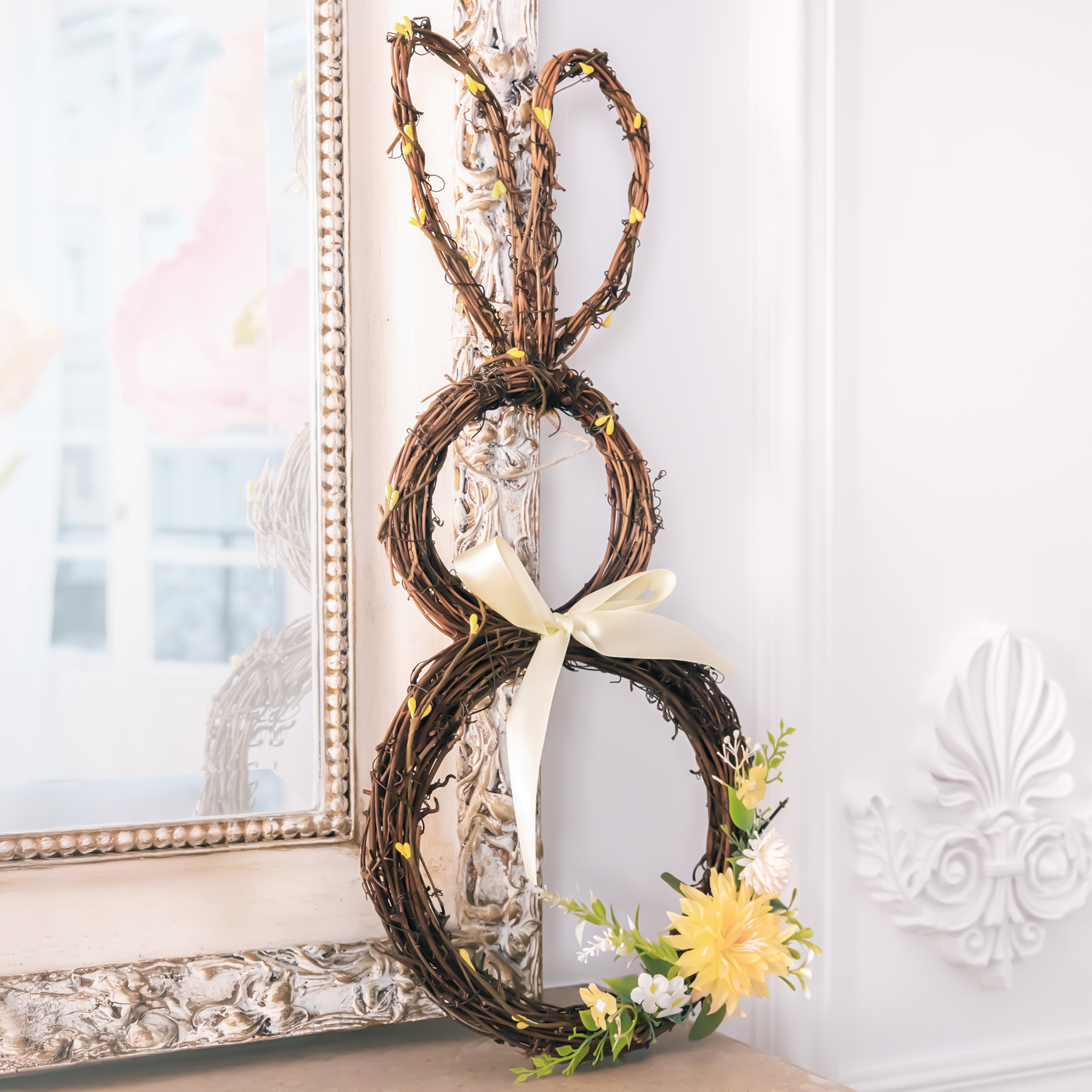 Dekoracje wielkanocne Zajączek wianek żółty 1 szt.
