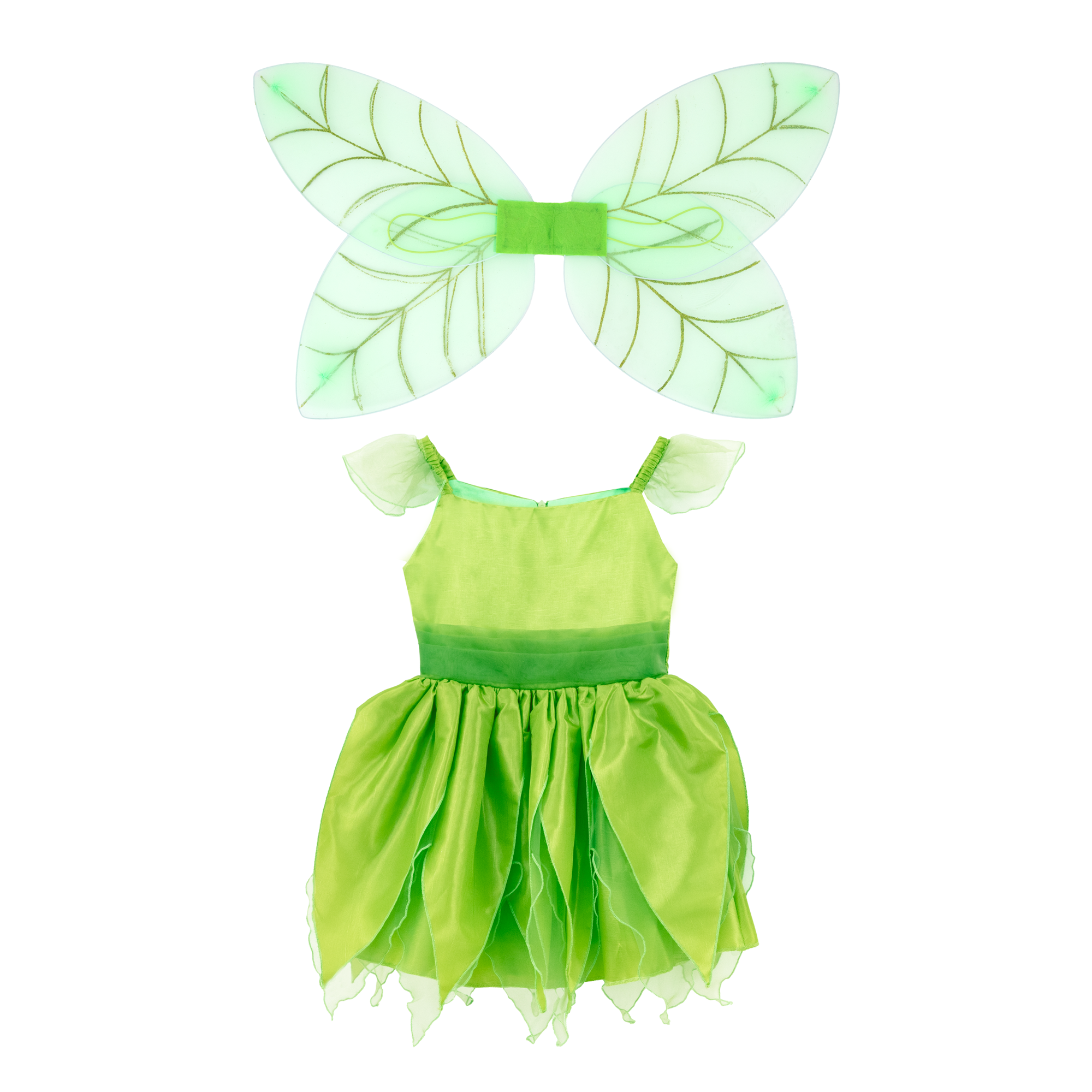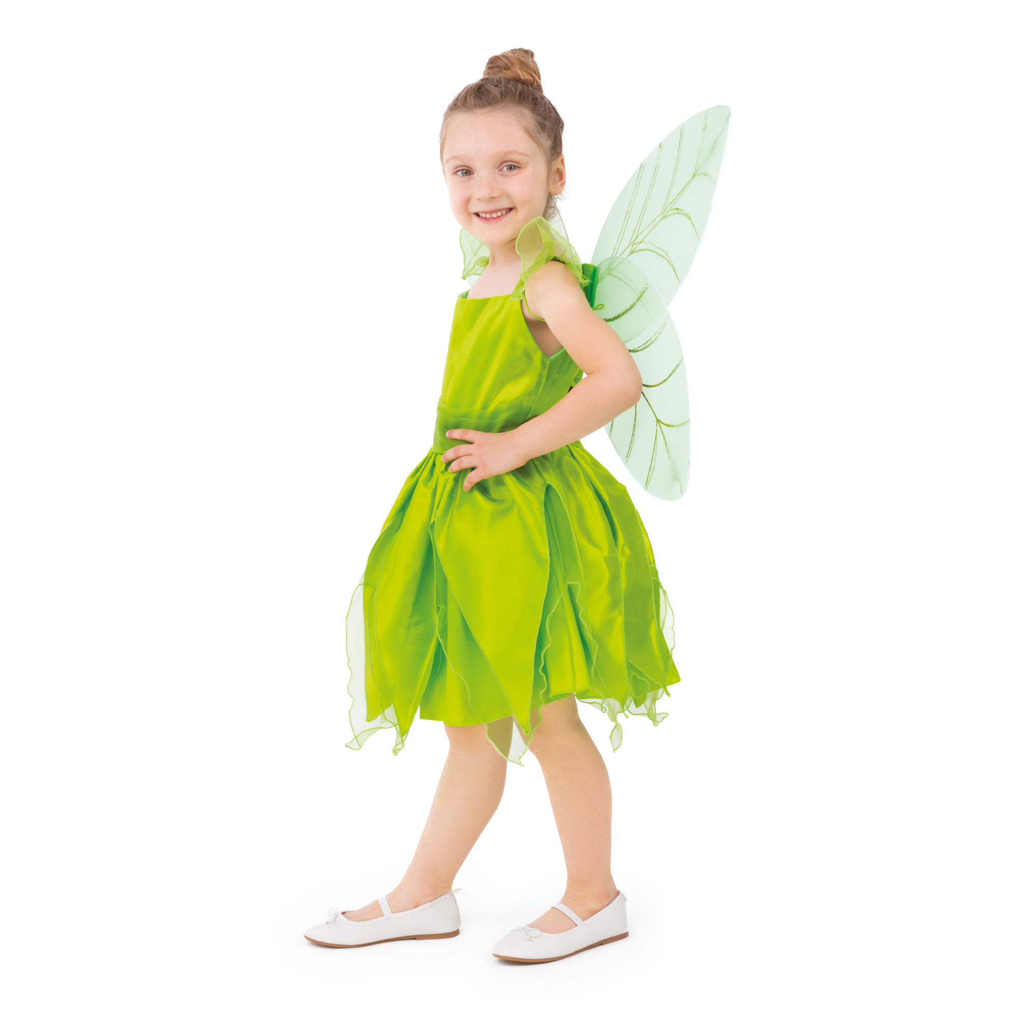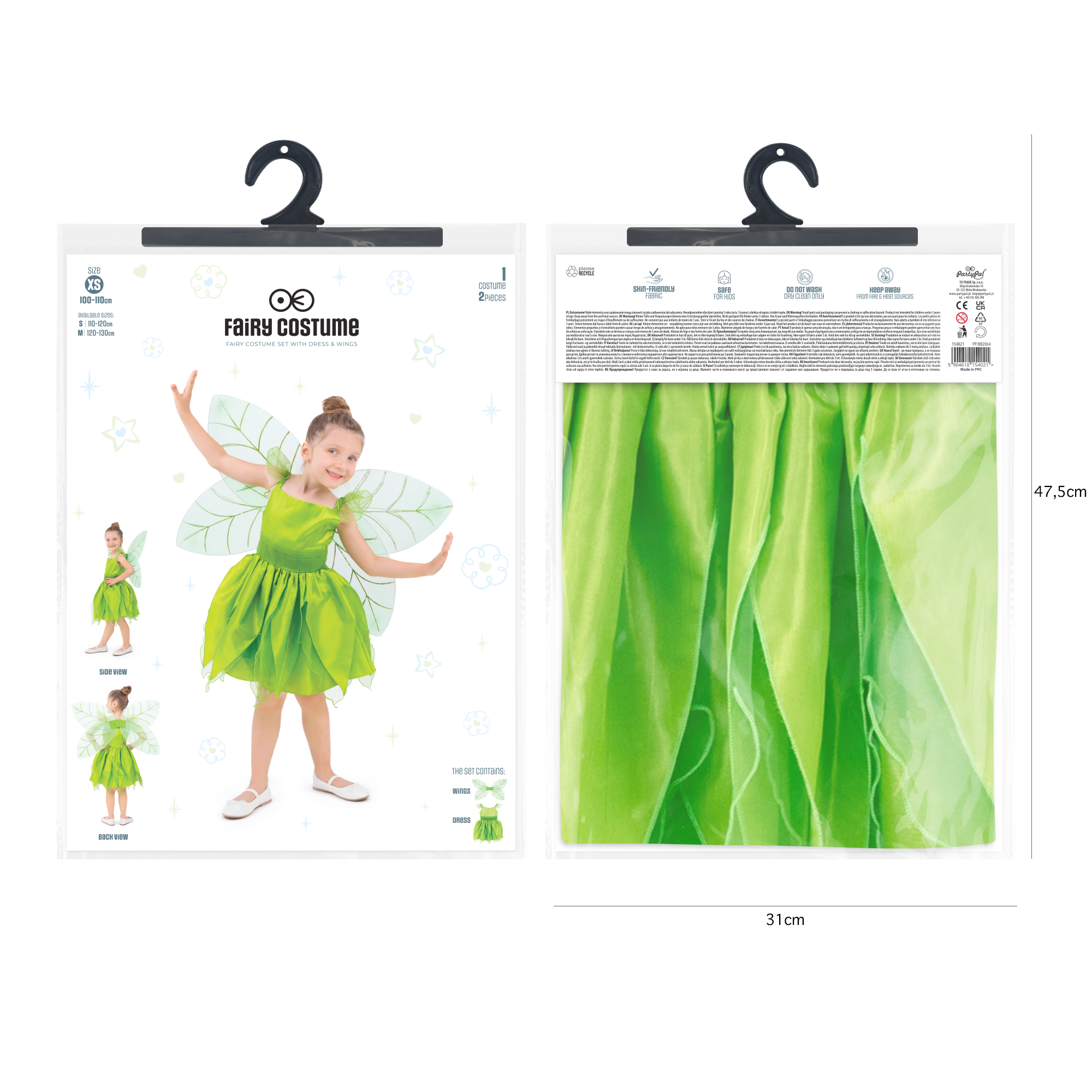 Strój wróżki dla dziewczynki w kolorze zielonym. W skład zestawu wchodzi sukienka oraz skrzydełka.
