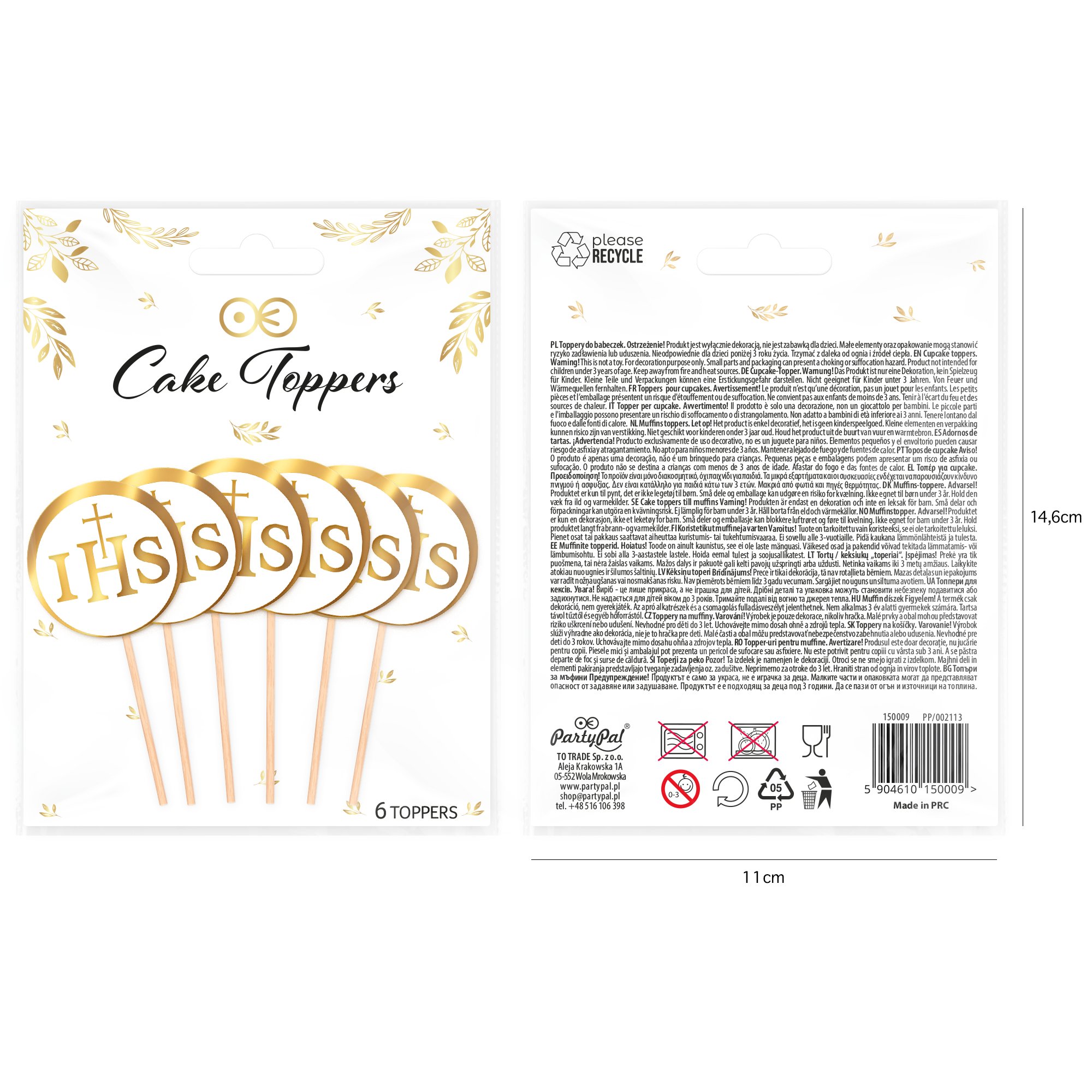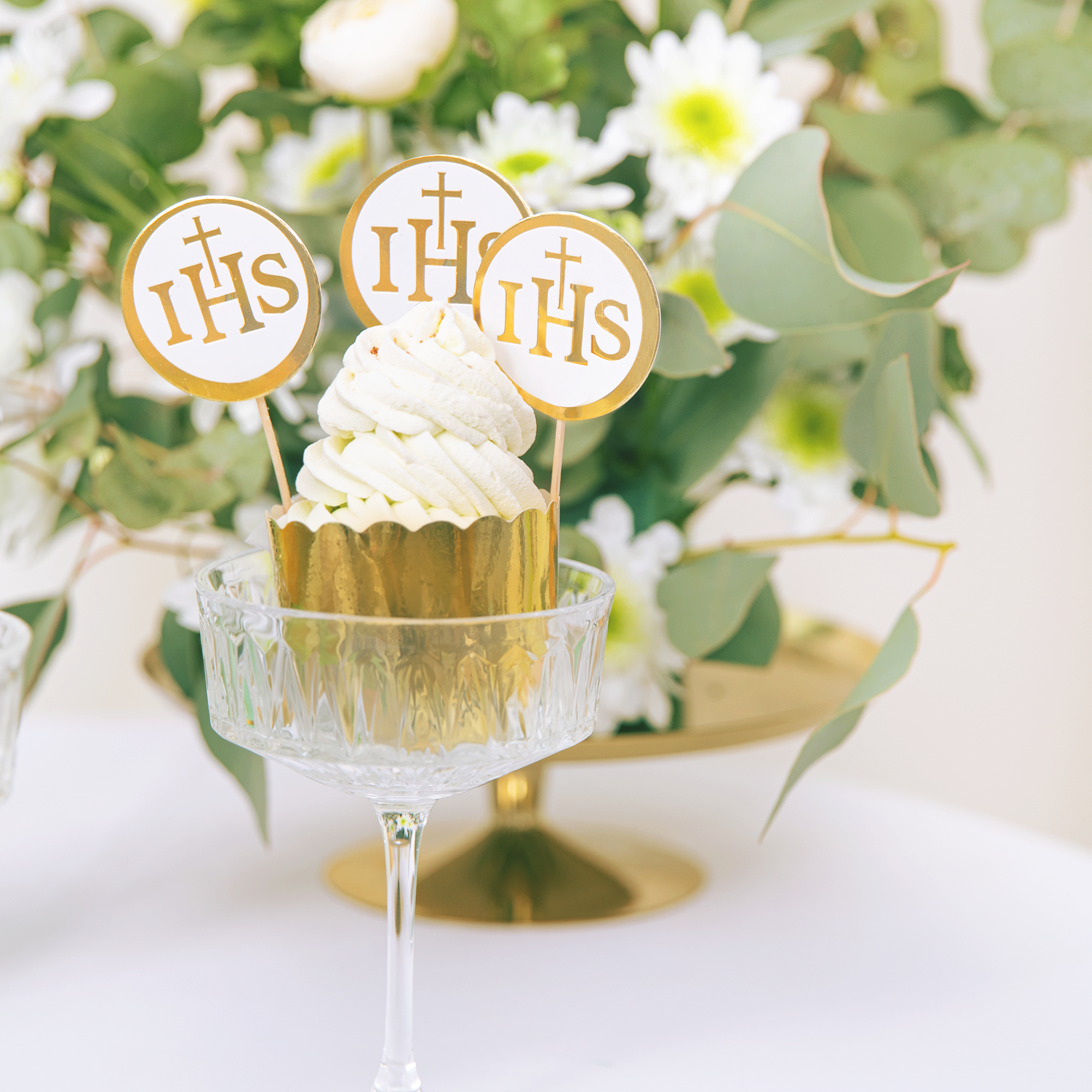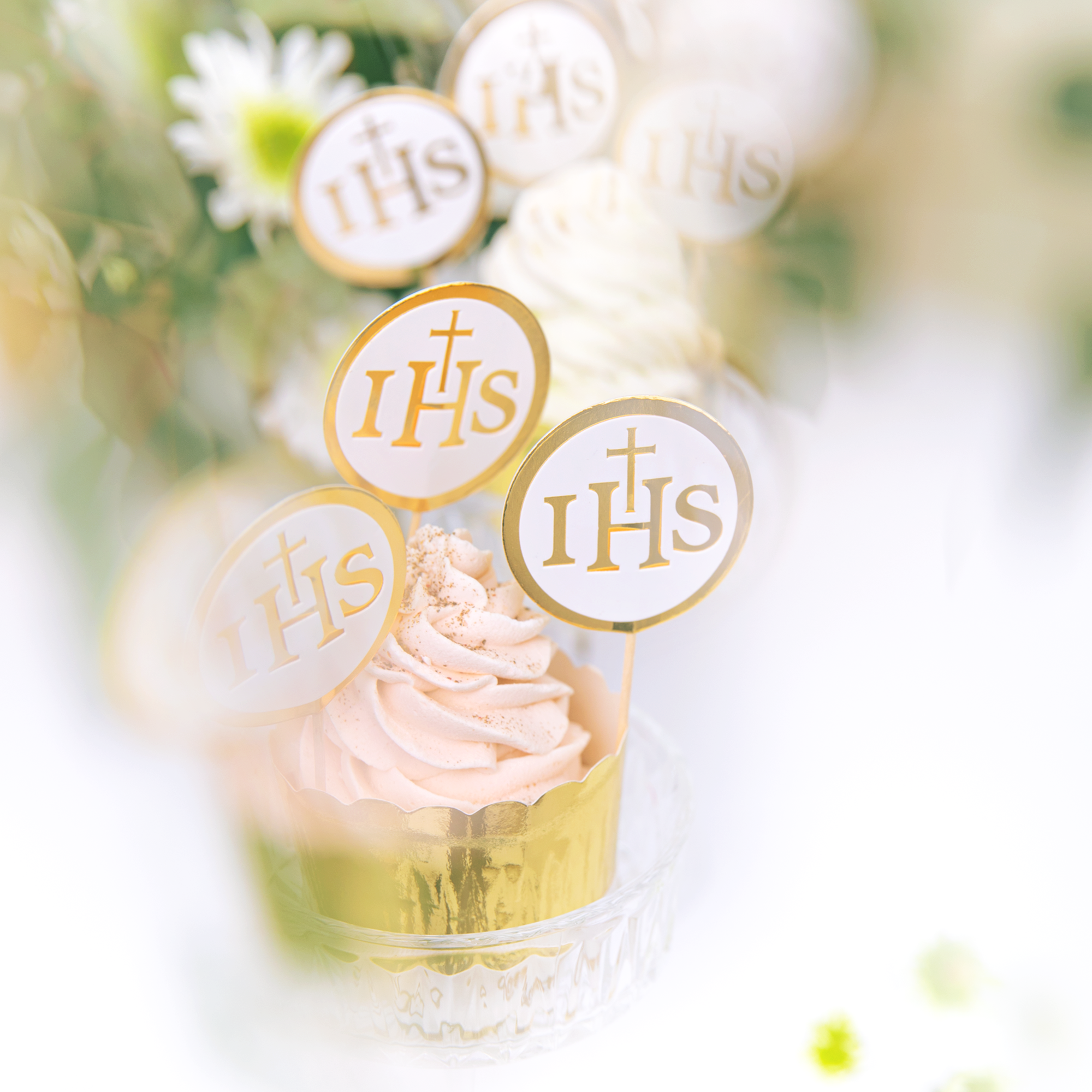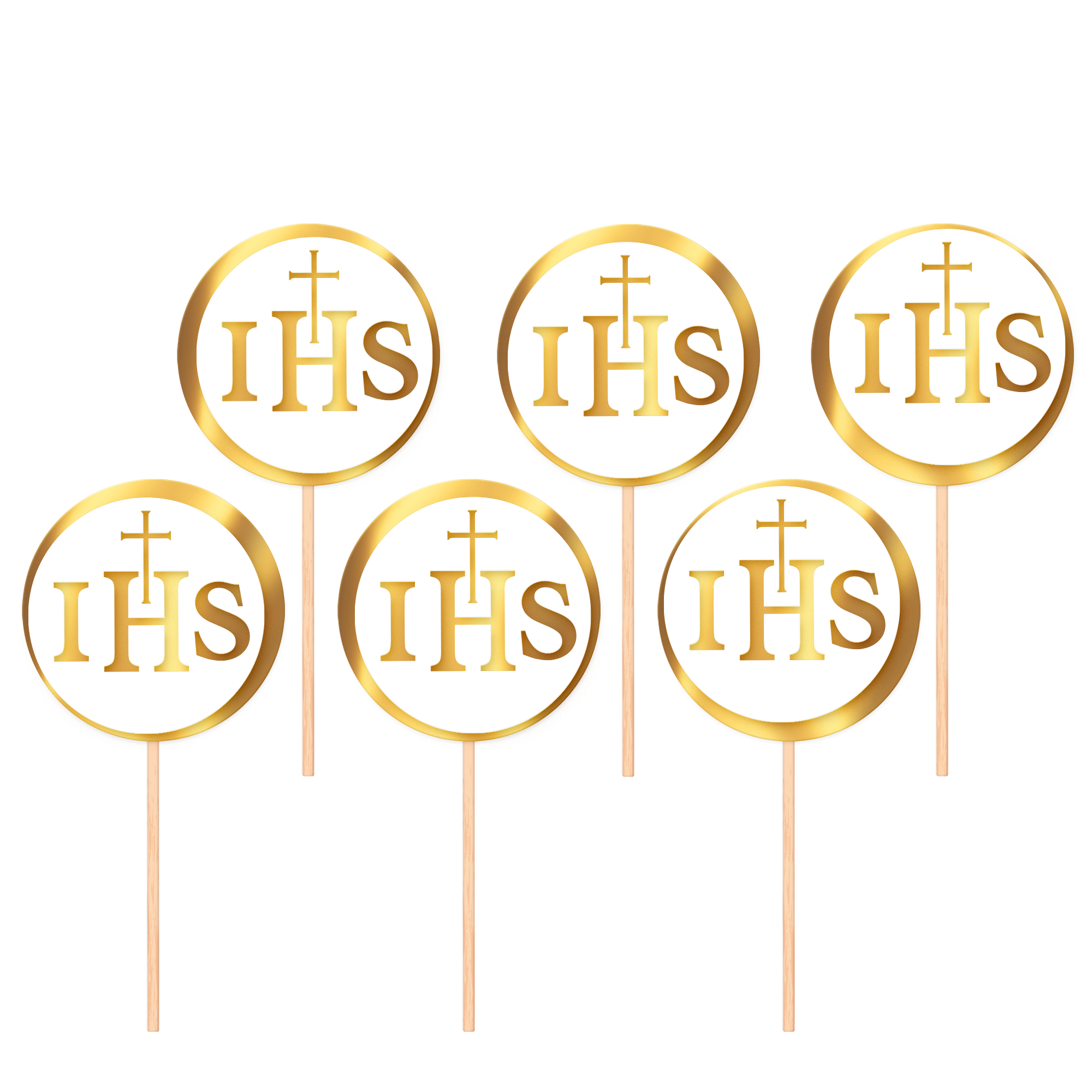 Toppery na tort komunijny IHS biało-złote 6szt. - OUTLET