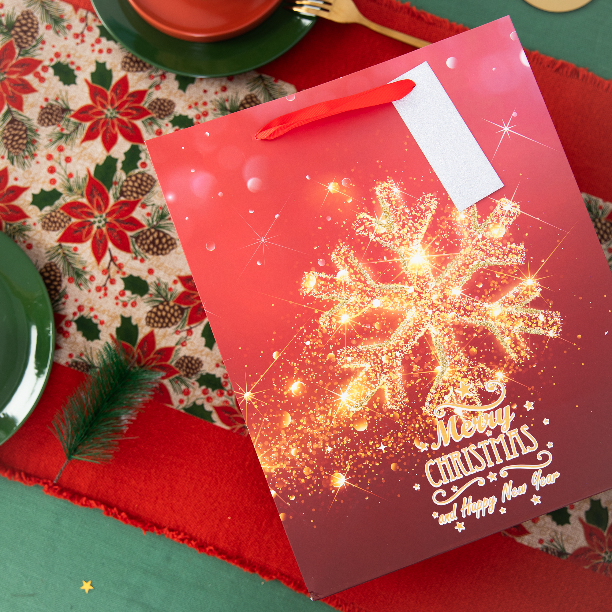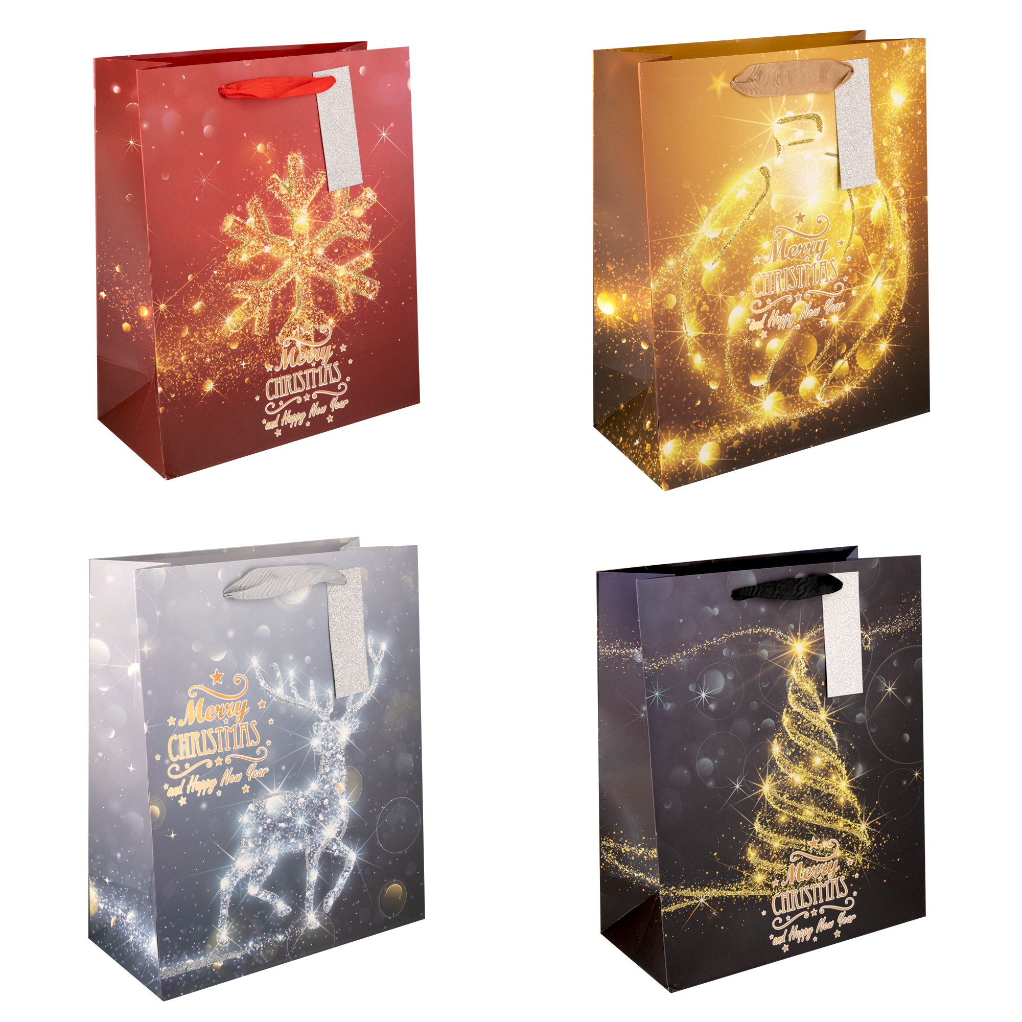 Torebki na prezenty Merry Christmas and Happy New Year średnie 12szt. mix