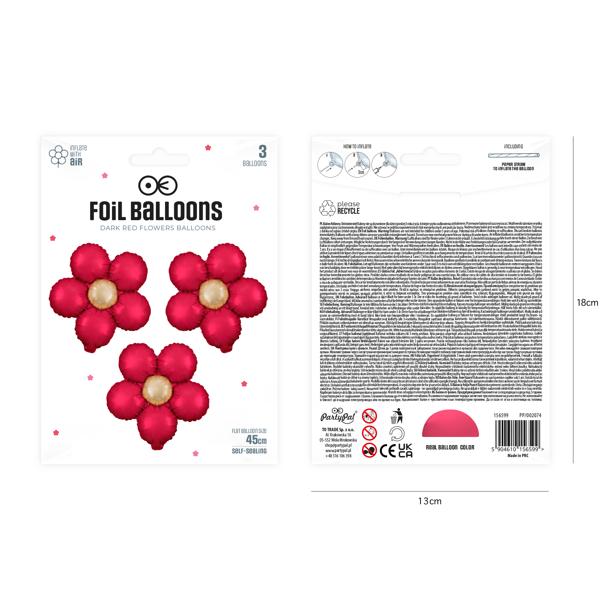 Balon foliowy Kwiat czerwony matowy 45 cm 3szt.