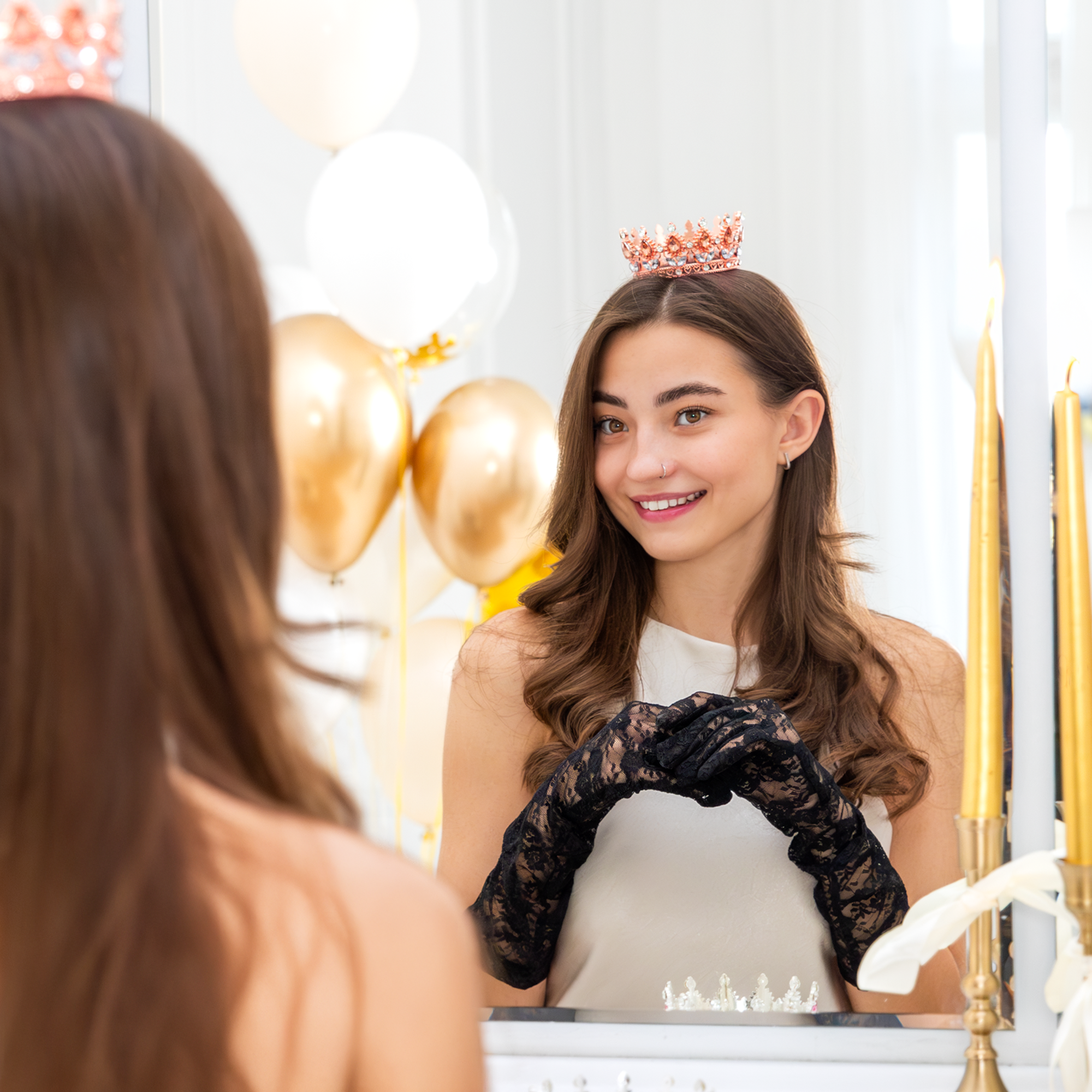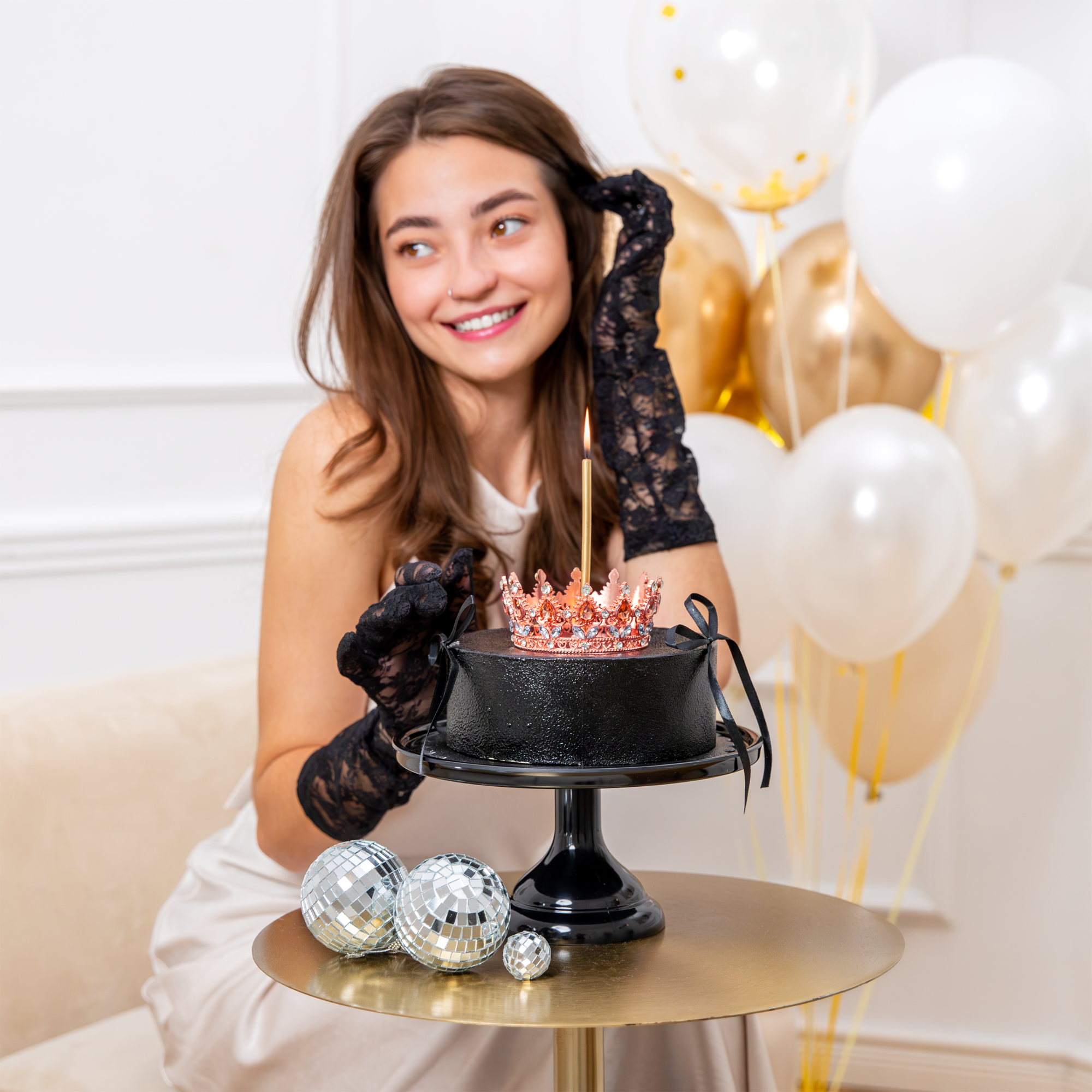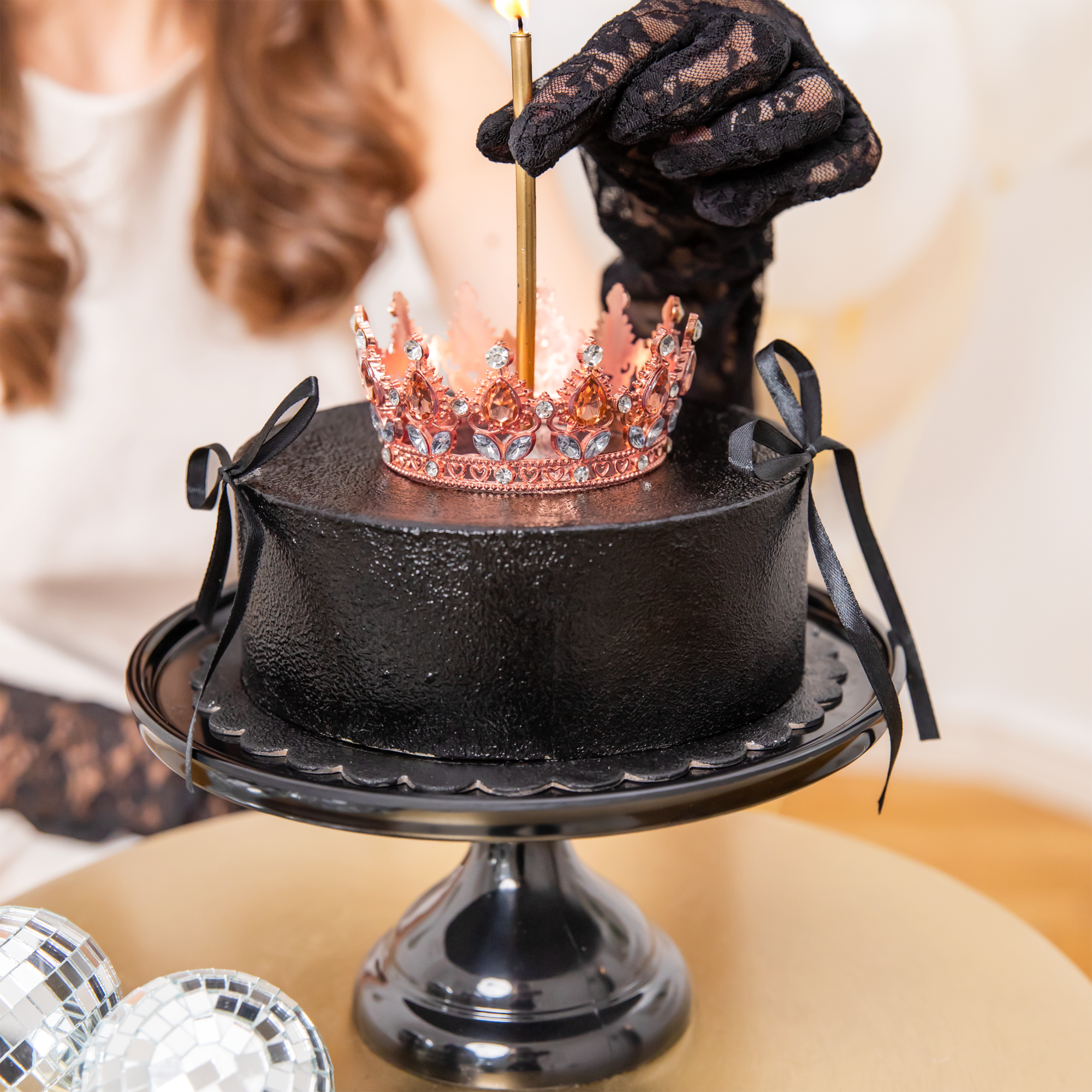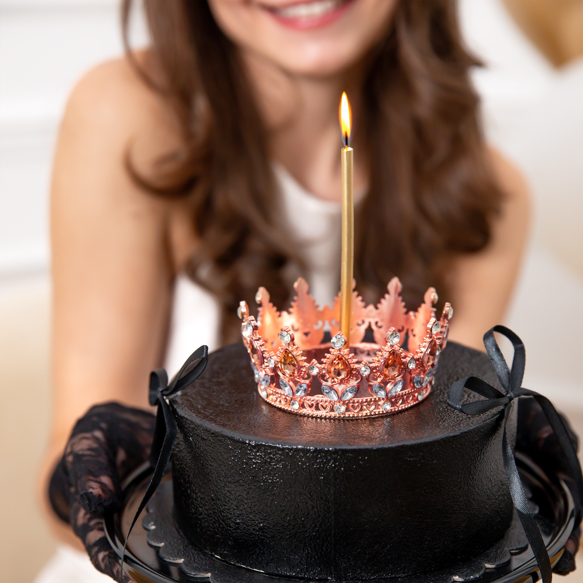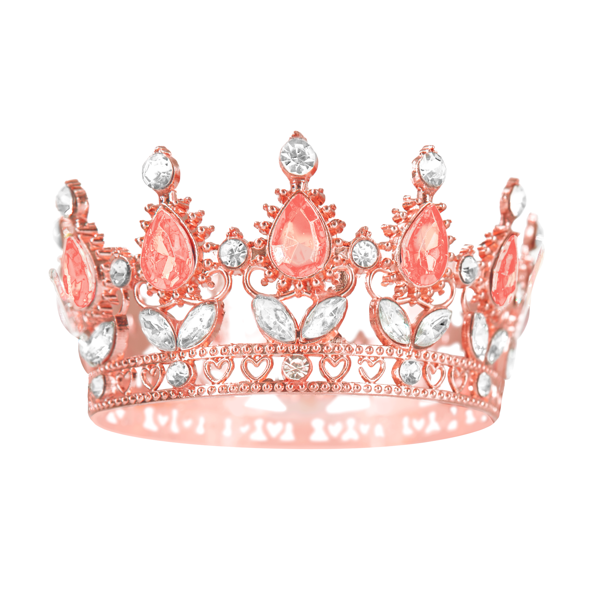 Piękna ozdoba na tort w postaci korony, idealna zarówno dla małych, jak i dużych księżniczek. Produkt wykonany z niezwykłą starannością, łączący w sobie elegancję oraz unikalny design. Korona w kolorze rose gold z kryszt.ałkami w kolorze rose gold i srebrnym doda blasku każdemu przyjęciu, podkreślając jego wyjątkowy charakter.