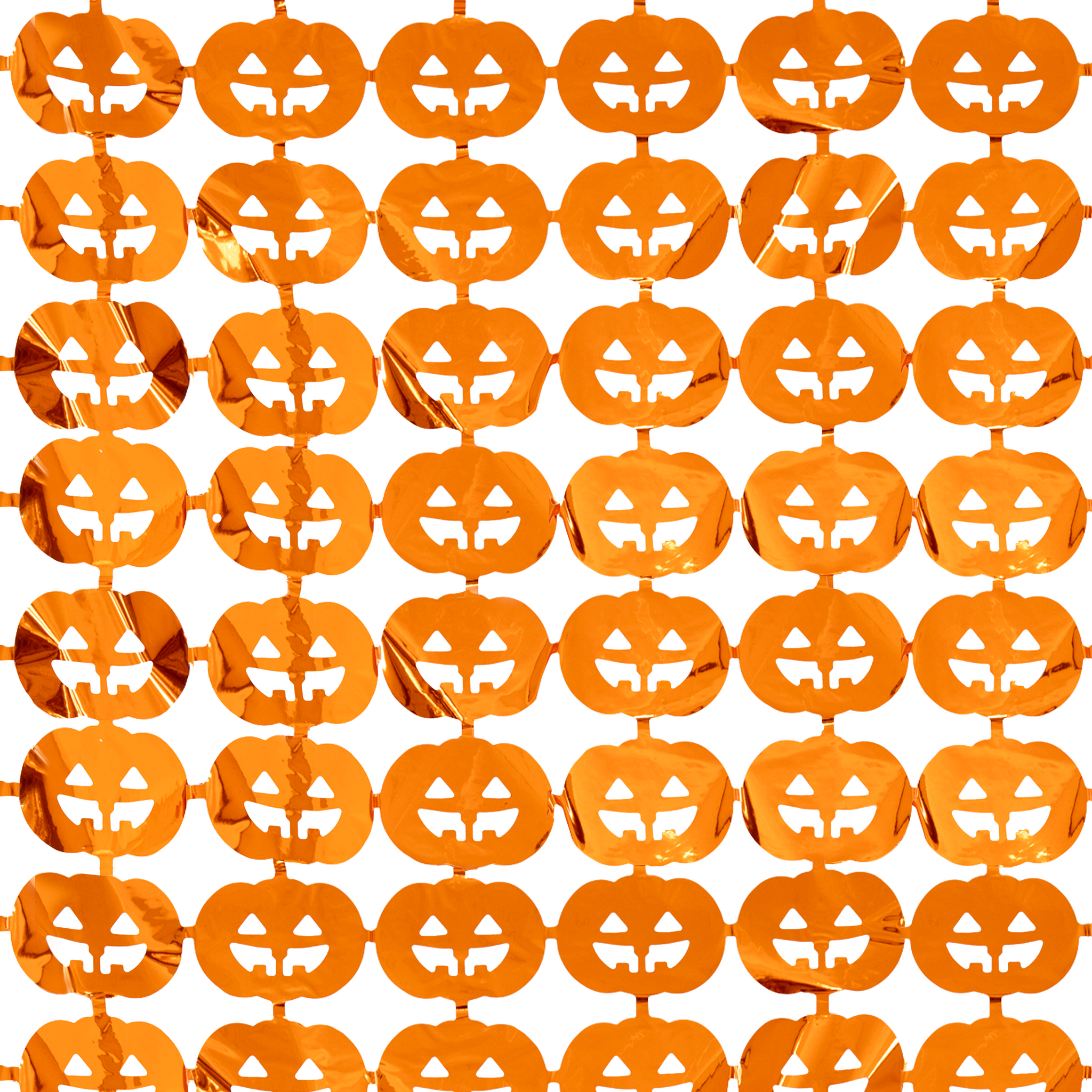 Kurtyna imprezowa Dynie wykonana została z pomarańczowej błyszczącej folii. Będzie wyróżniającym się elementem kompozycji udekorowanych na Halloween wnętrz.