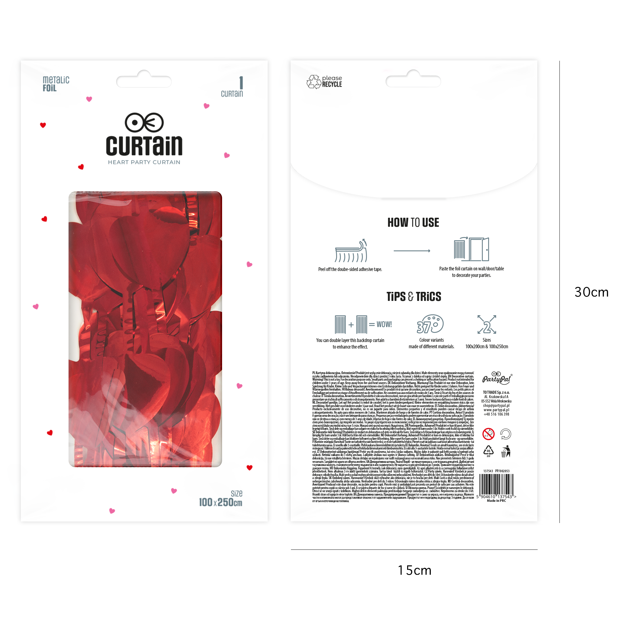 Kurtyna imprezowa Serca czerwona 100x200cm