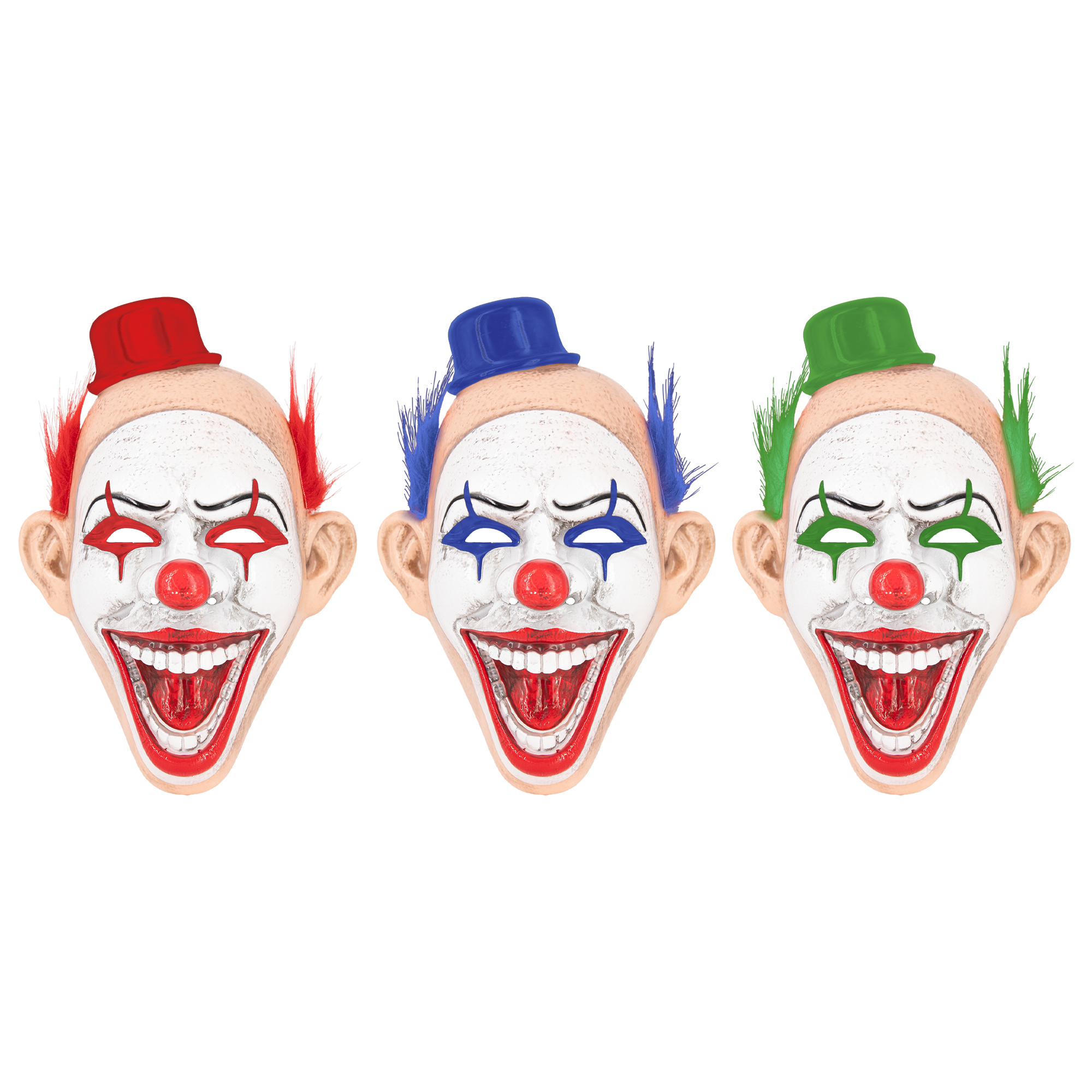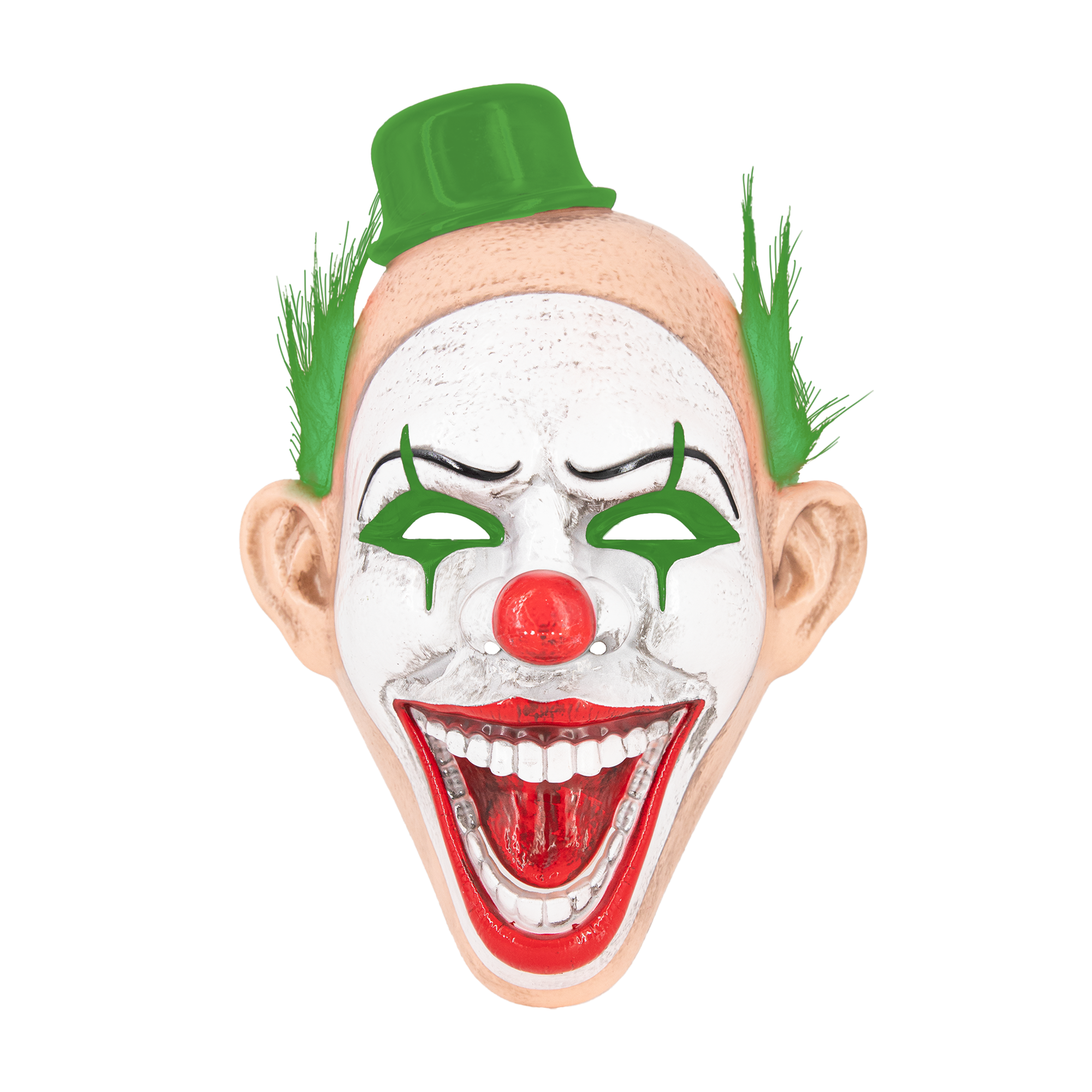 Maska klauna doskonała dla osób, które chcą wprowadzić atmosferę napięcia i dreszczyku emocji. Szeroki uśmiech i mini kapelusik w intensywnym kolorze dodaje groteskowego uroku.