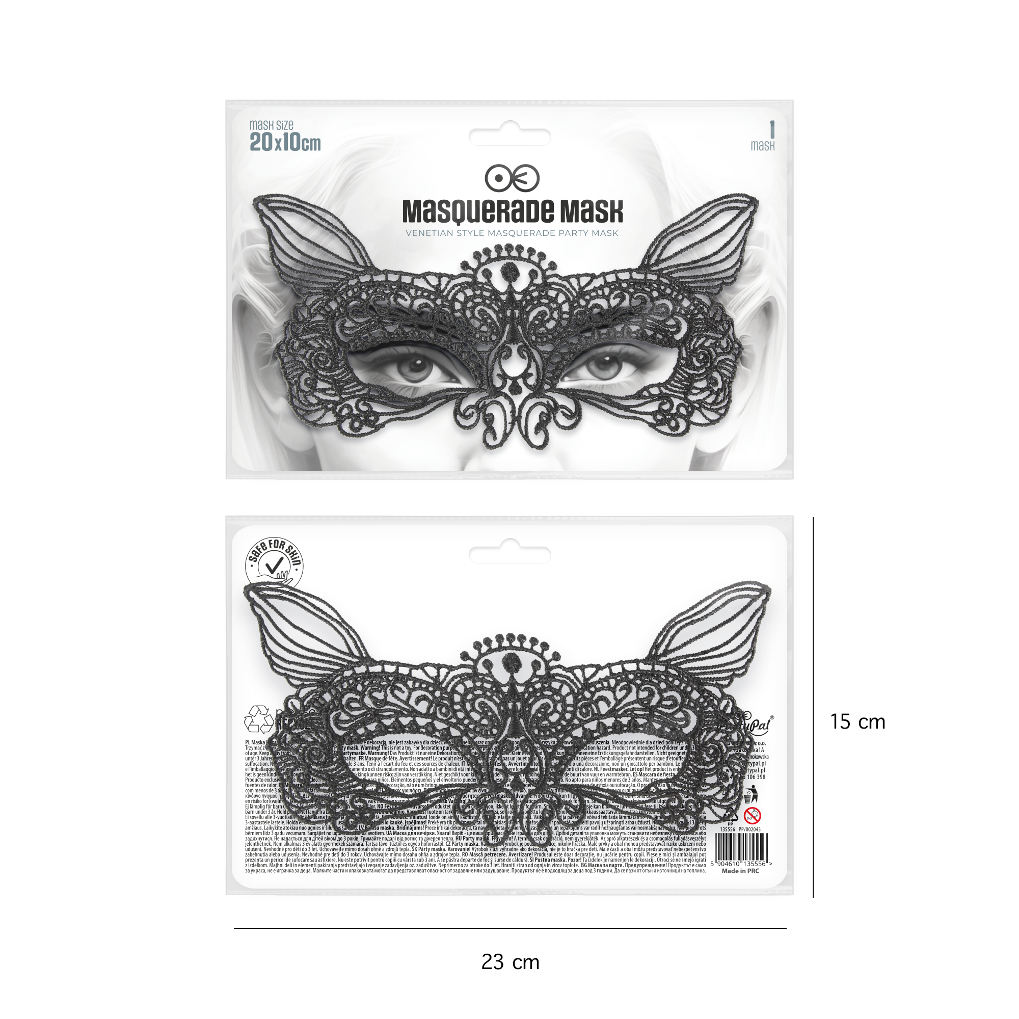 Maska wenecka Wilk koronkowa czarna 22x10cm