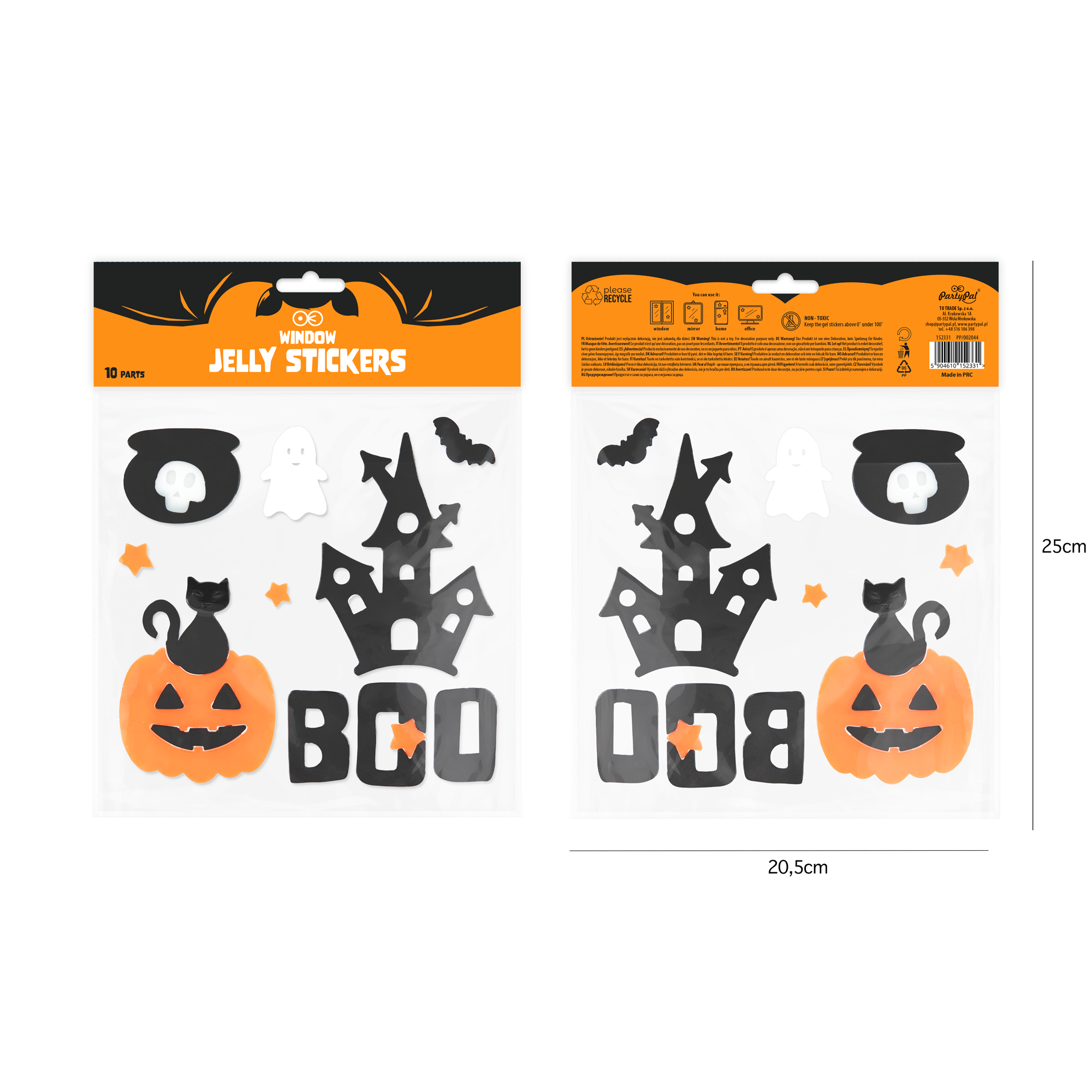 Naklejki żelowe na szybę Halloween BOO 20,5x20 cm