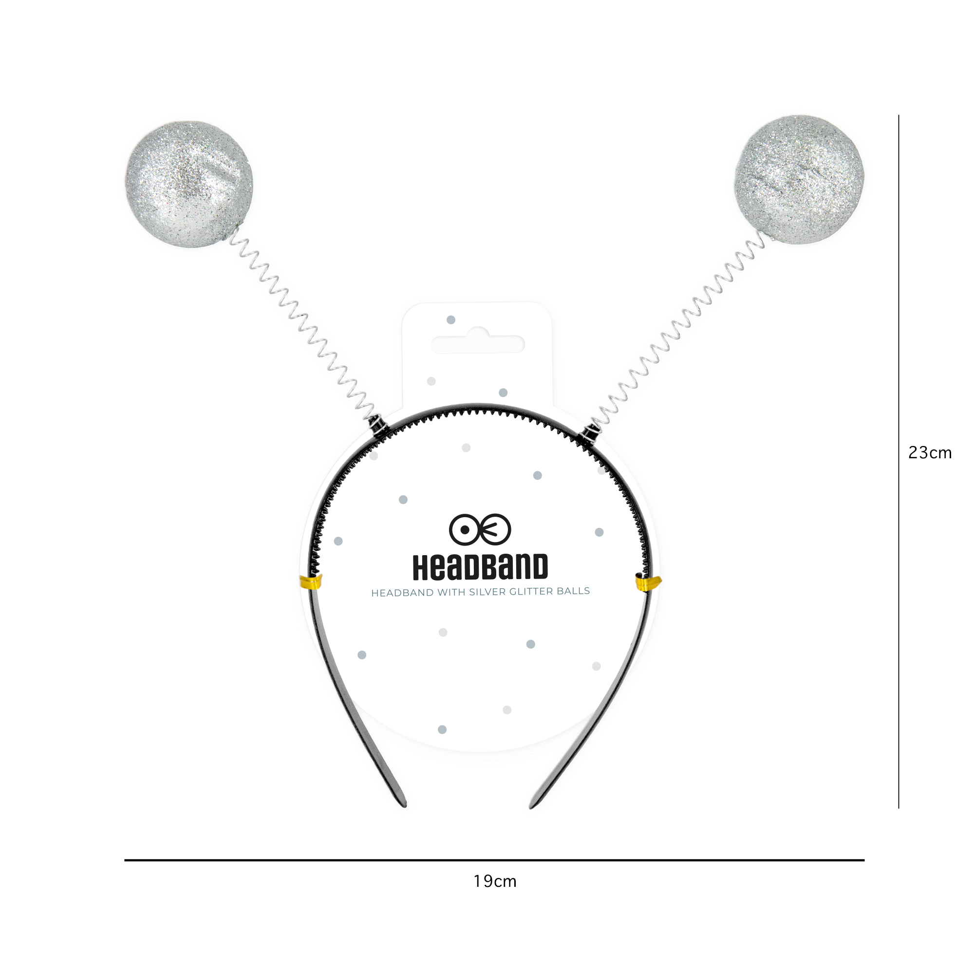 Opaska ze srebrnymi kulkami na sprężynkach 20x22cm