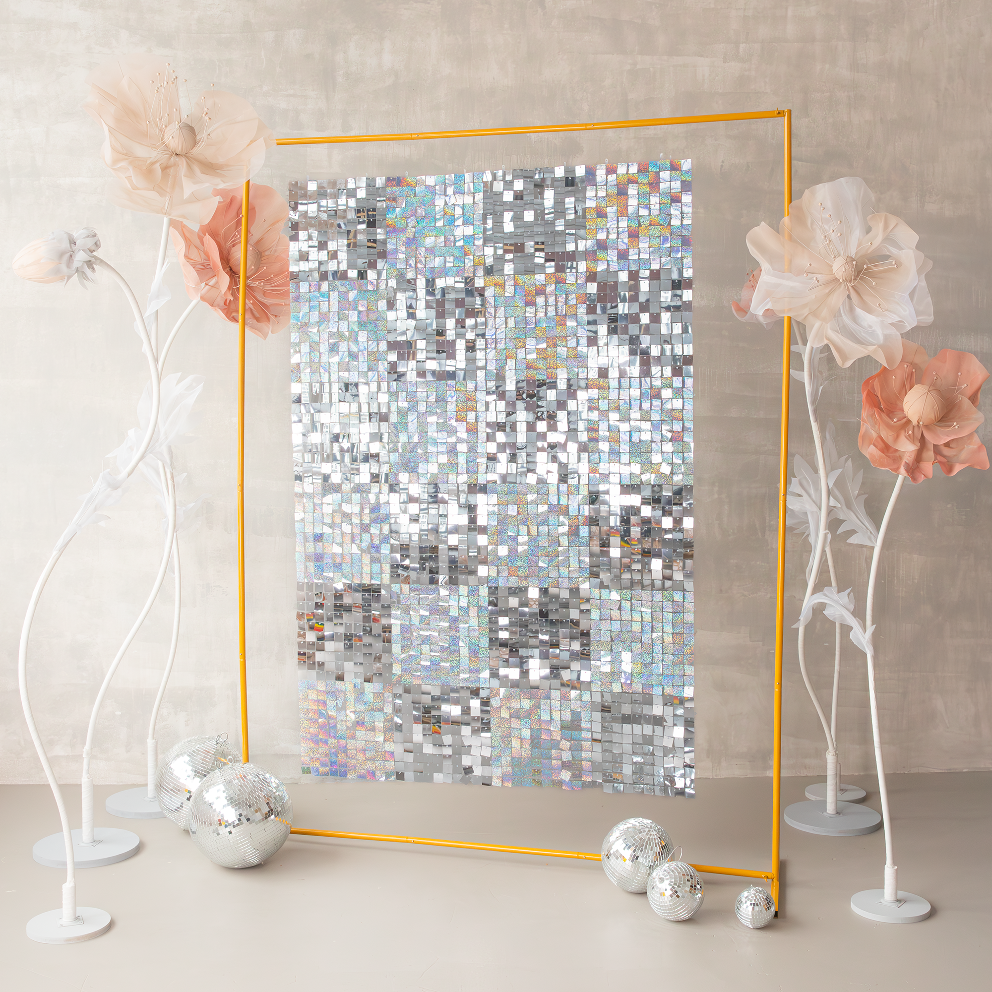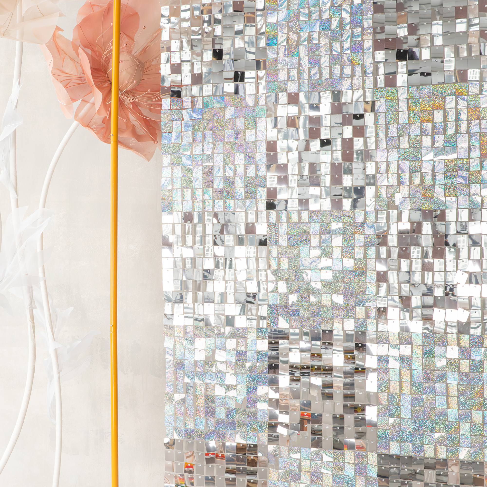 Seria paneli dekoracyjnych, dzięki którym można stworzyć atrakcyjne tło do sesji zdjęciowej lub na wystrzałową imprezę. Każdy panel składa się ze 100 pojedynczych, luźno zawieszonych blaszek, które dają niezwykle ciekawy, trójwymiarowy efekt poruszając się na skutek ruchu powietrza. Cekinowa struktura i połysk sprawiają, że efektownie odbijają światło. Idealne na wesele, urodziny, Sylwester czy zabawę karnawałową.