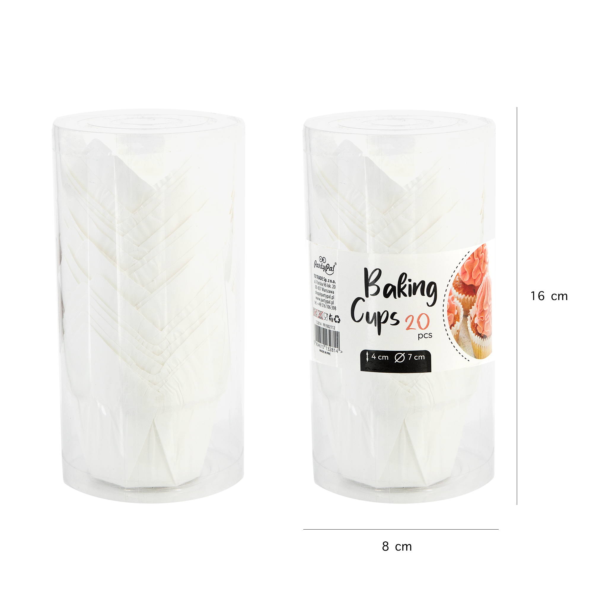 Proste ale zarazem efektowne papilotki do babeczek w kolorze białym. Zapewnią elegancką oprawę uwielbianych przez dzieci wypieków m.in. na spotkaniach z okazji chrztu czy komunii.