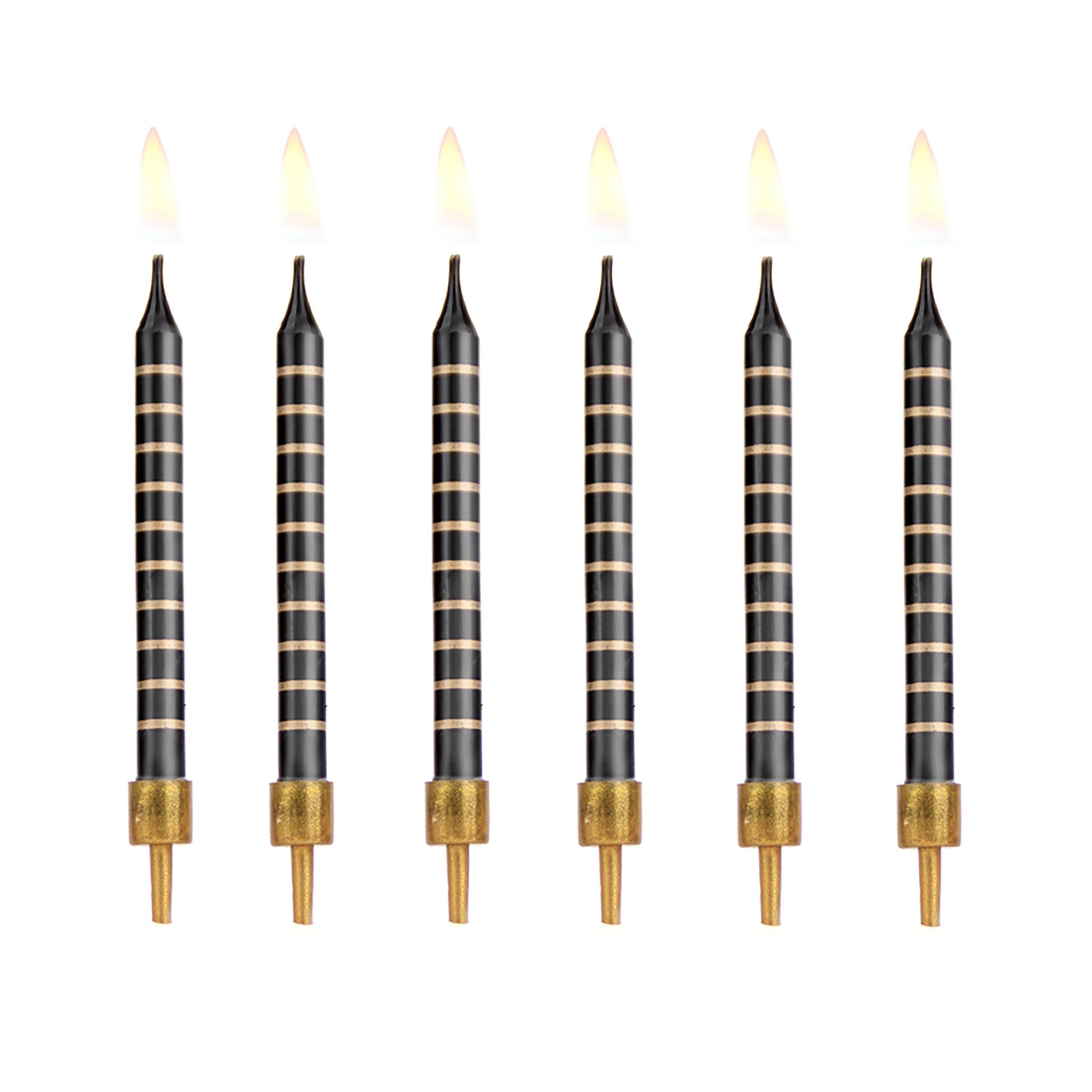 Świeczki urodzinowe czarne w złote paski 12szt