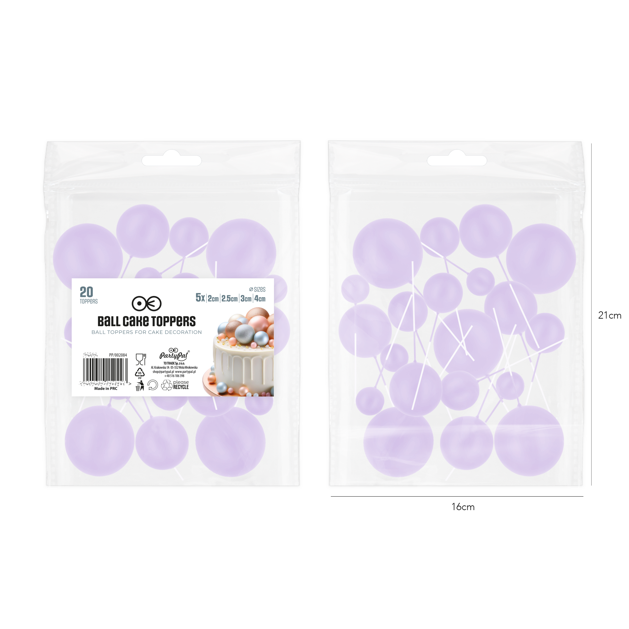 Toppery na tort kulki jasnofioletowe matowe 20sztuk zestaw