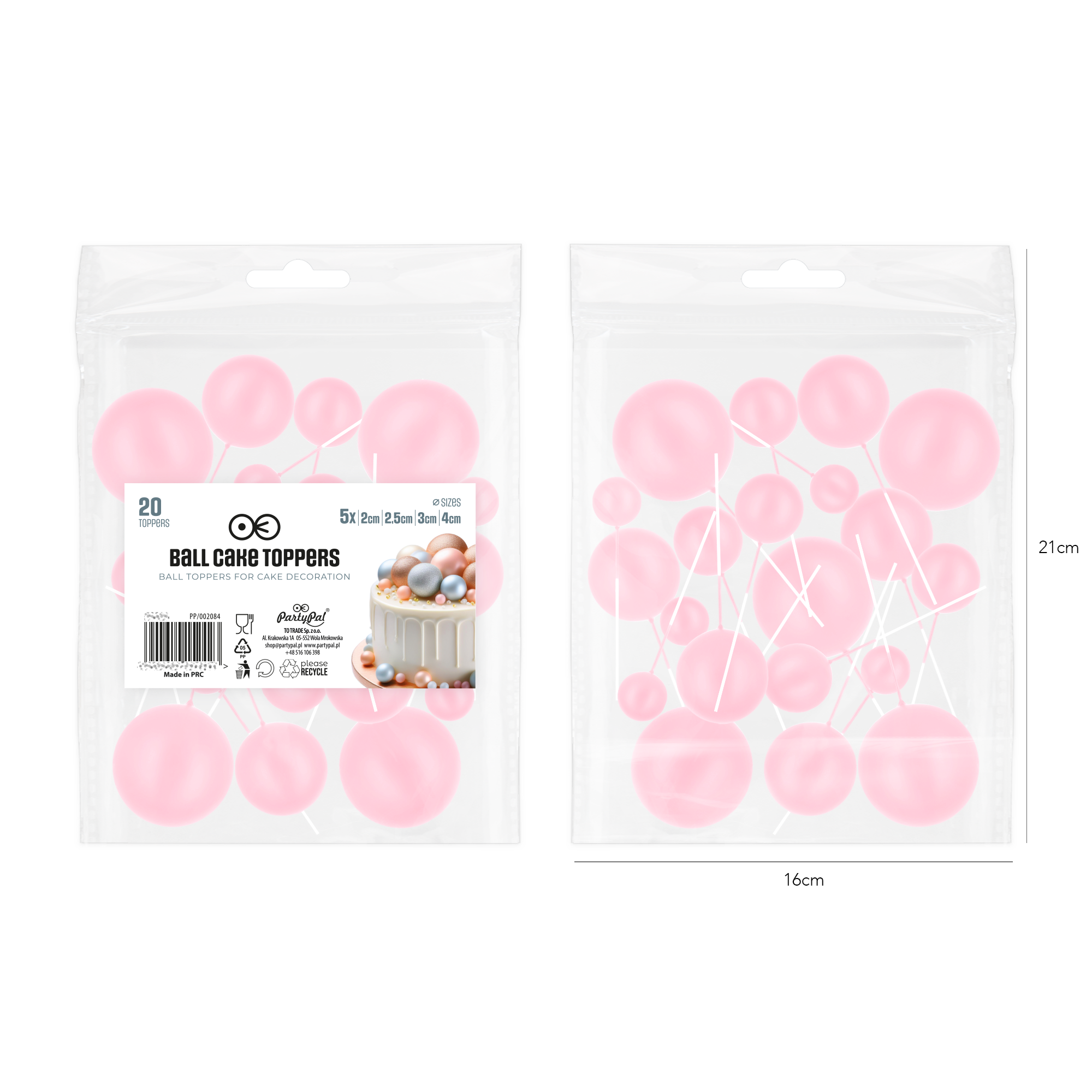 Toppery na tort kulki jasnoróżowe matowe 20sztuk zestaw