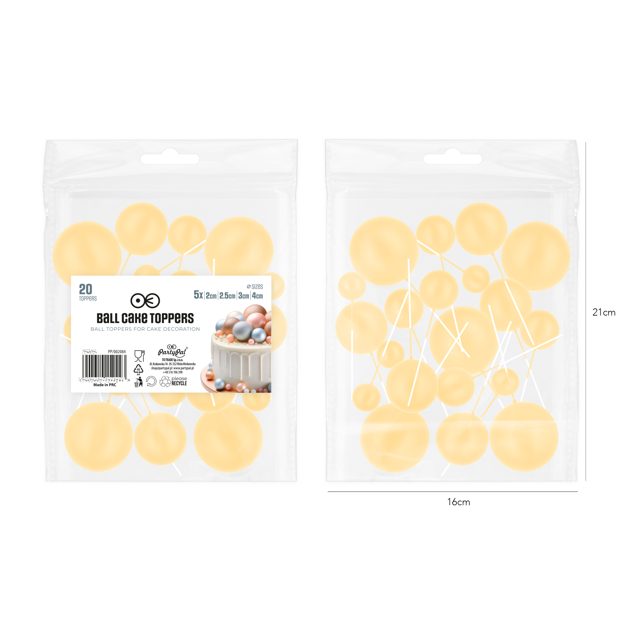 Toppery na tort kulki miodowe matowe 20sztuk zestaw