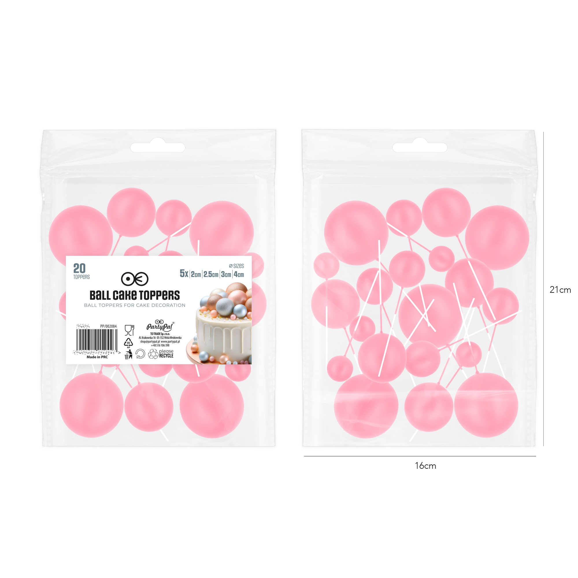 Toppery na tort kulki różowe matowe 20sztuk zestaw