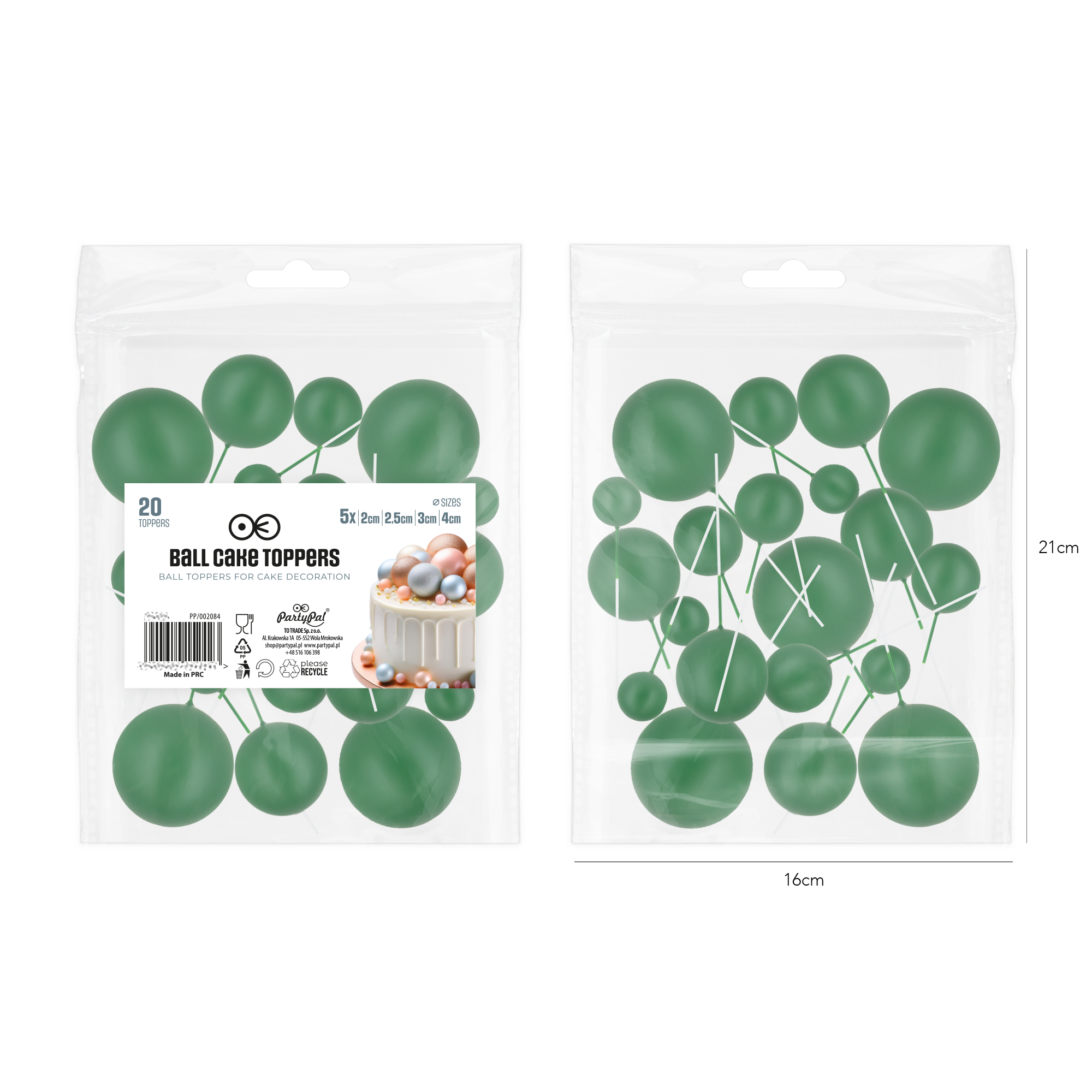 Toppery na tort kulki zielone matowe 20 szt. zestaw