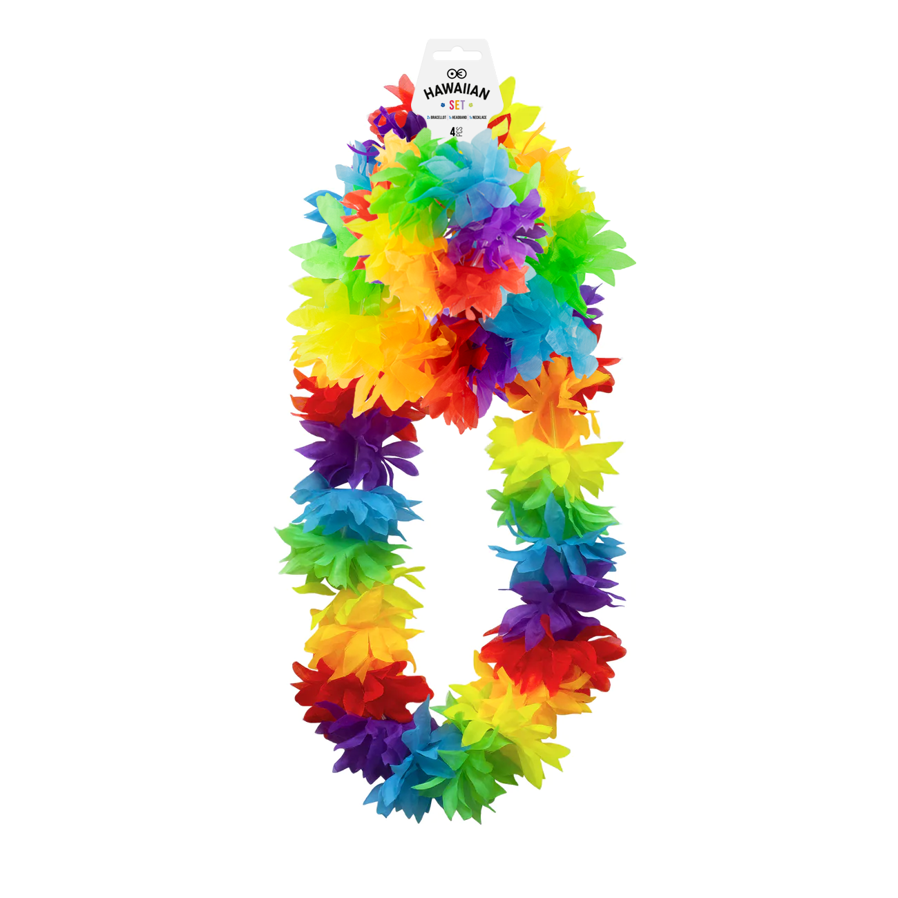 W zestawie znajduje się naszyjnik hawajski, opaska na głowę oraz dwie bransoletki. Idealna propozycja przebrania na przyjęcie w stylu hawaii party.