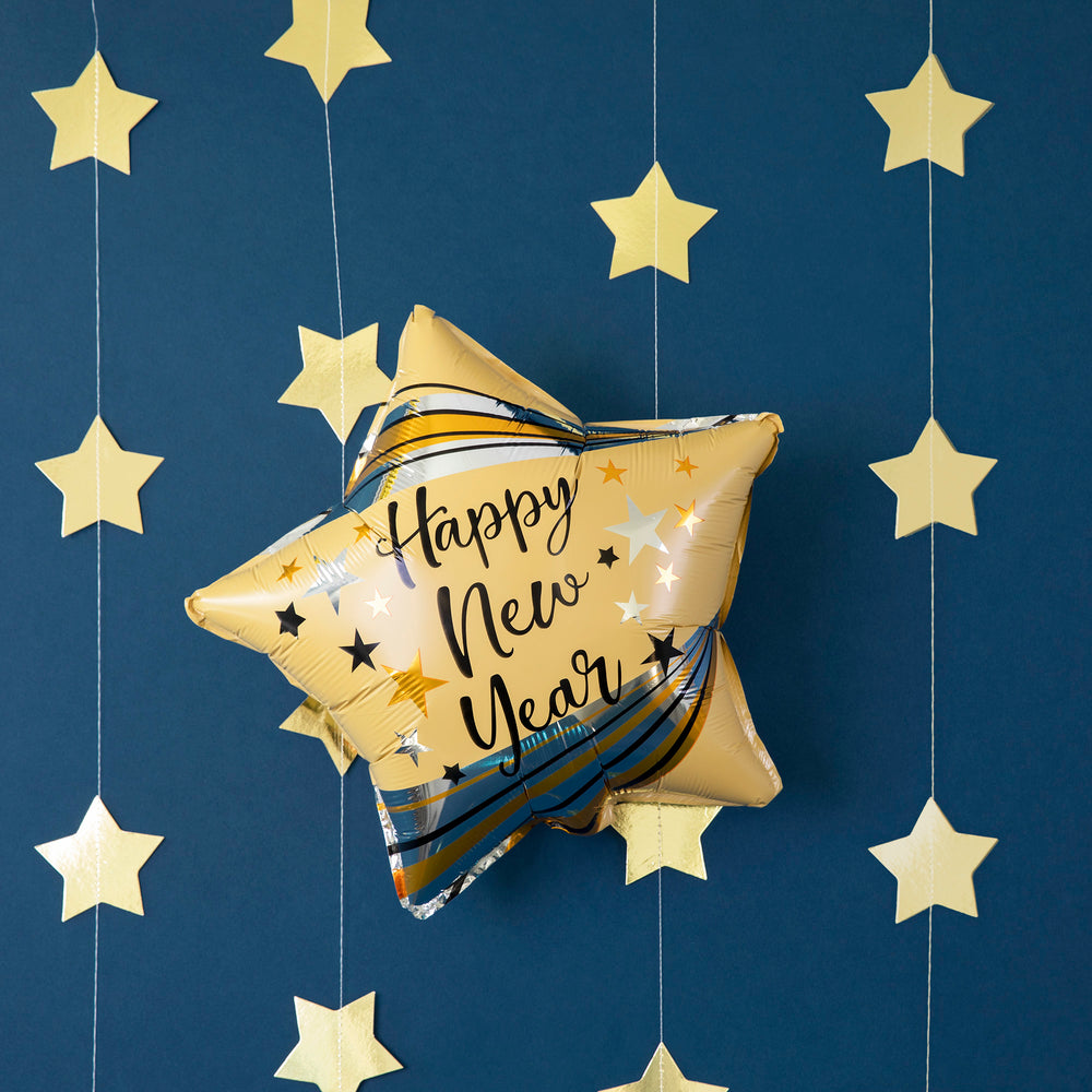 Balon foliowy Gwiazda Happy New Year czarny 45cm