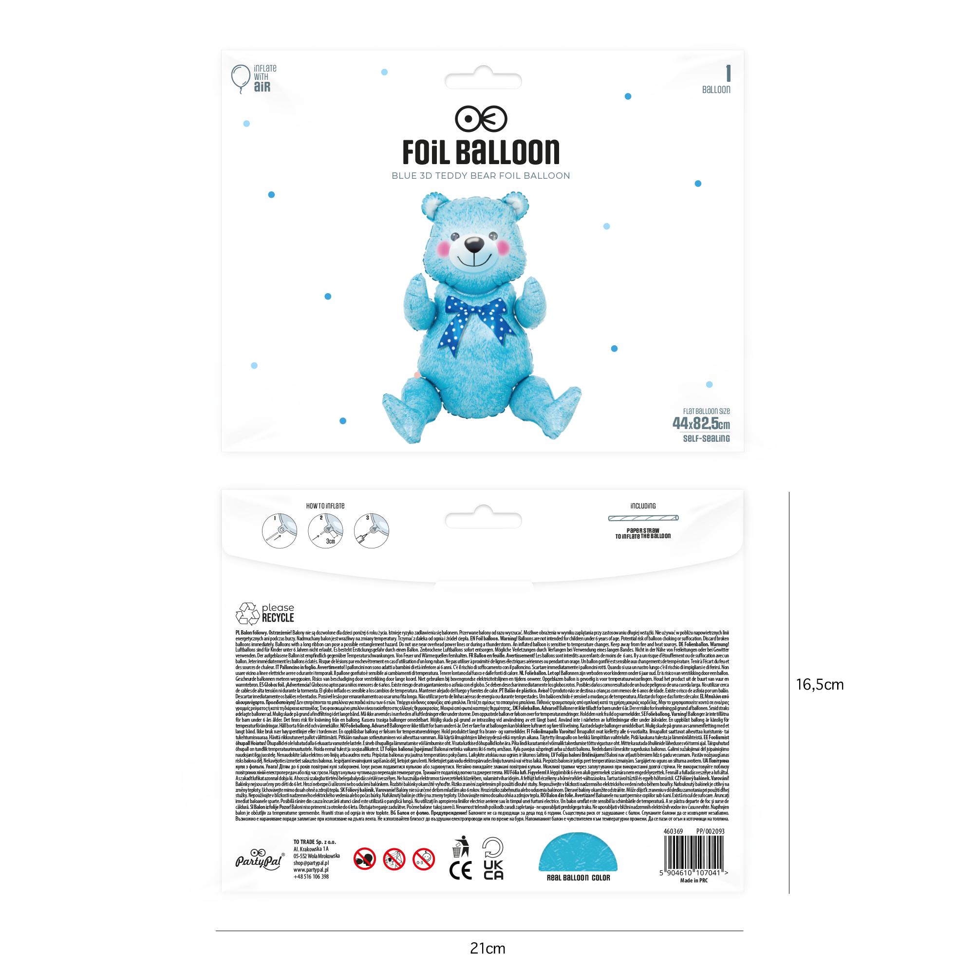Balon foliowy Miś siedzący niebieski 44x82,5cm