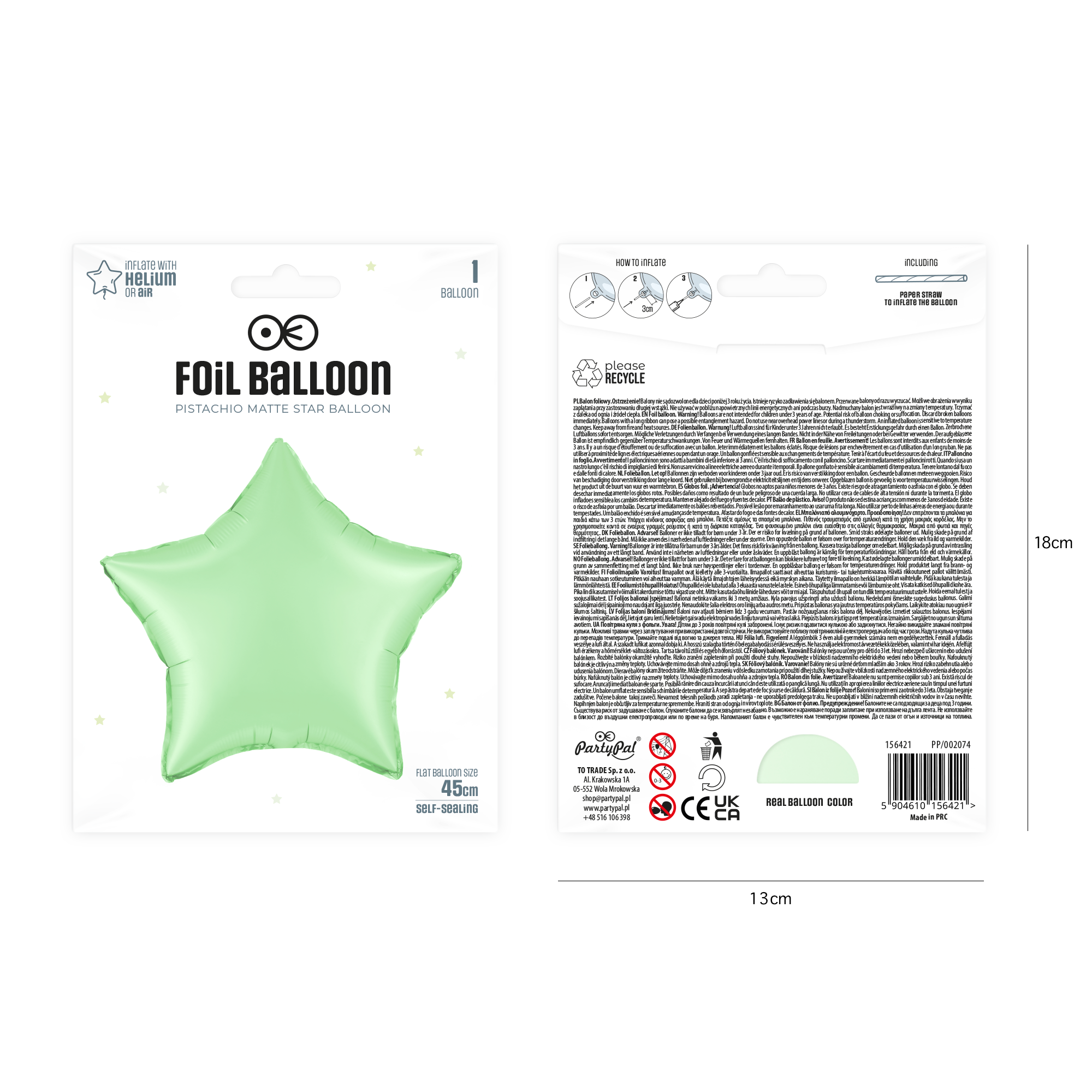 Balon foliowy Gwiazda pistacjowy matowy 18cali