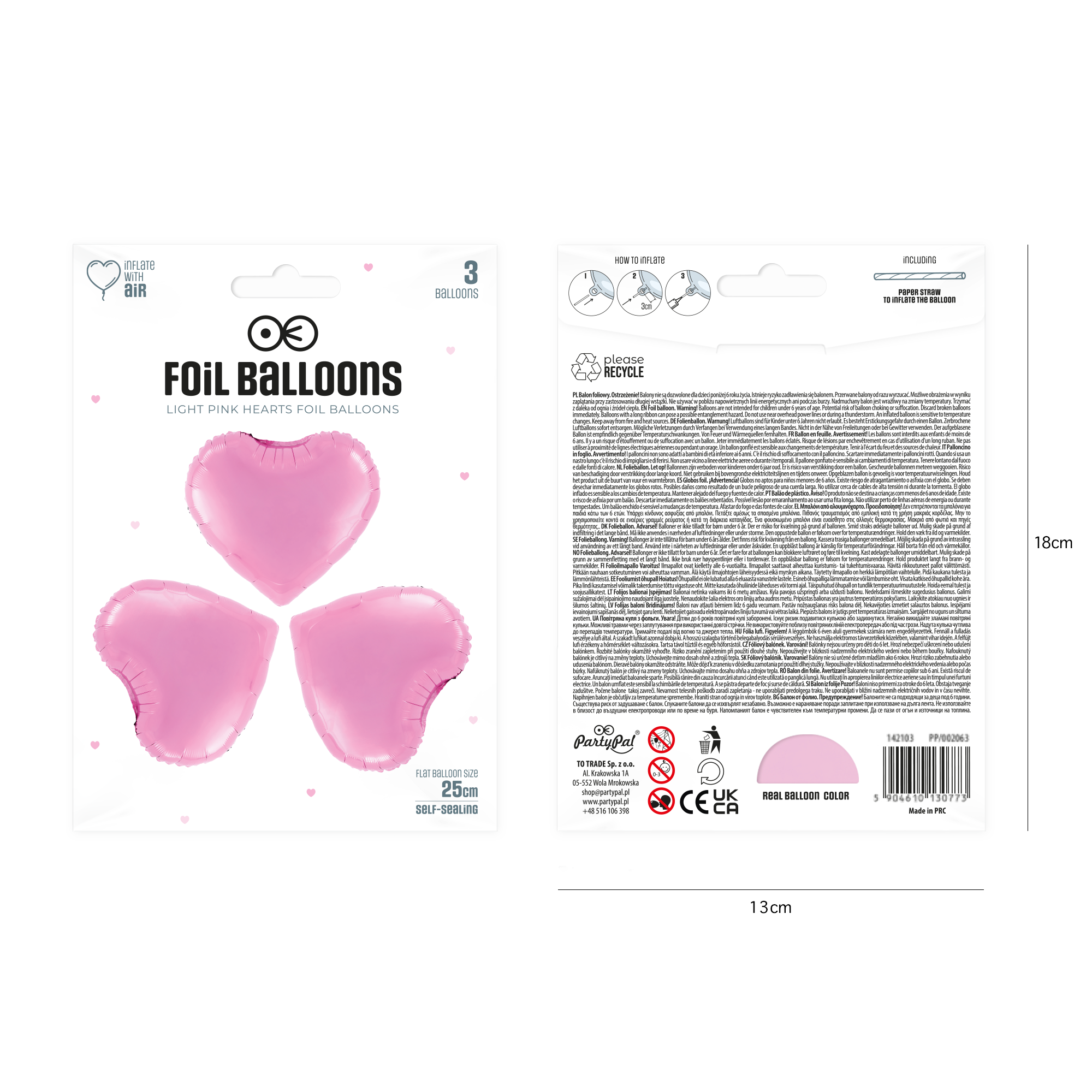 Balon foliowy Serce jasnoróżowy 9cali 3szt.