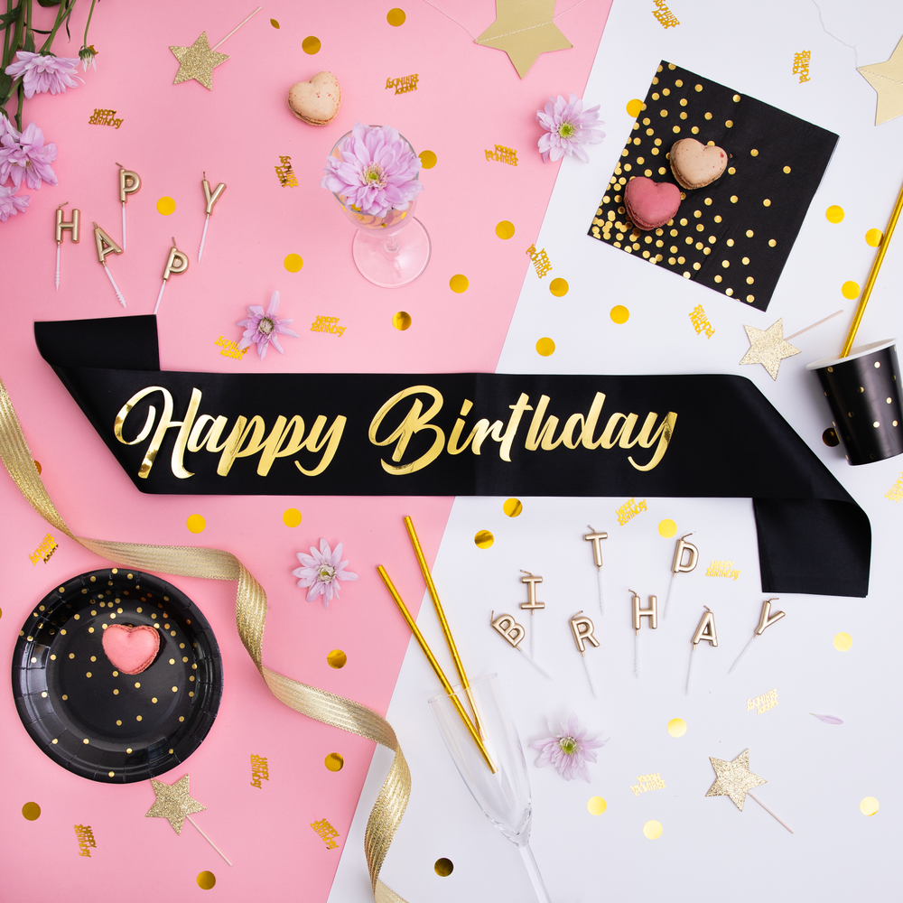 Szarfa urodzinowa Happy Birthday czarno-złota 10x160cm