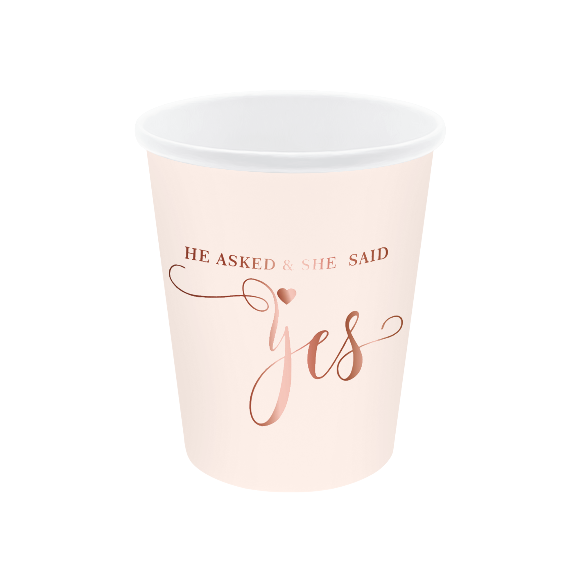 Praktyczny kubeczek w ulubionych przez przyszłe panny młode kolorach: różowym i rose gold. Oprawa stołu jest bardzo ważna, a po dobrej imprezie jednorazową zastawę będzie łatwo uprzątnąć.