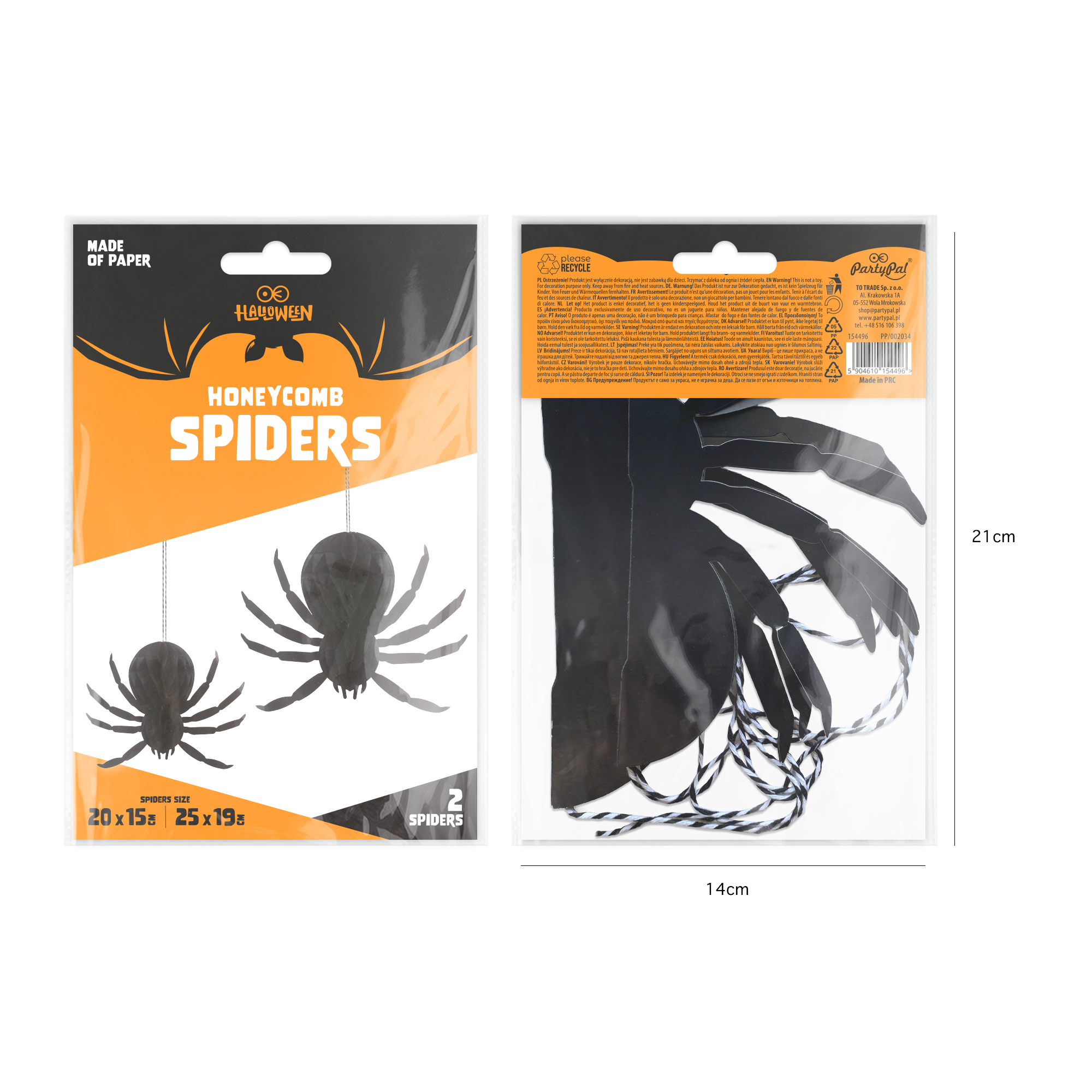 Dekoracje wiszące Halloween Pająki honeycomb czarne 2szt.