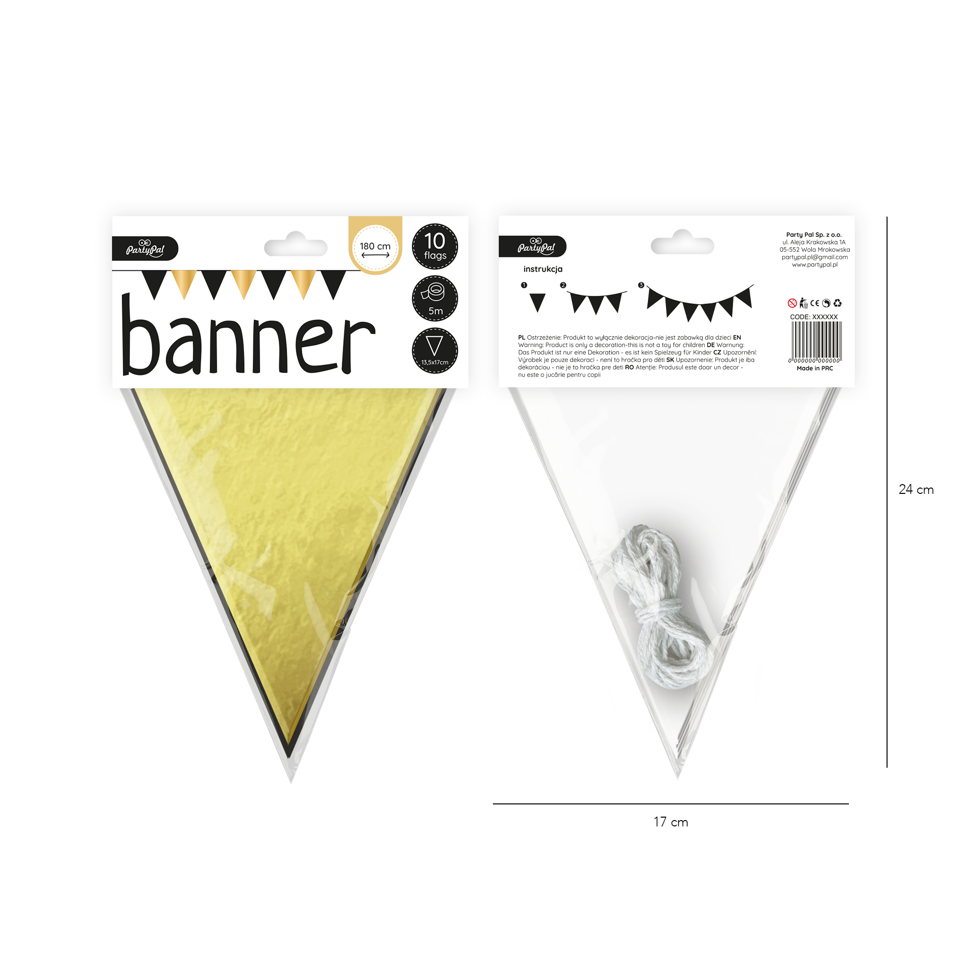 Flagi złoto-czarne girlanda 180 cm