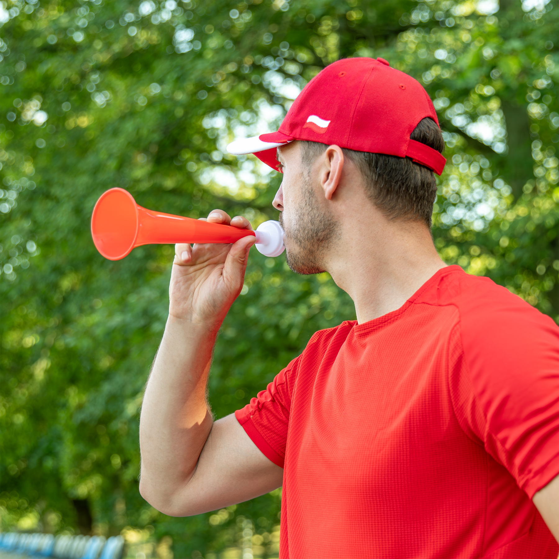 Trąbka kibica w kolorze czerwonym to idealny gadżet, który pozwala wyrazić swoje wsparcie dla ulubionej drużyny w wyjątkowy sposób! Wykonana z lekkiego, ale trwałego materiału. Dla patriotów, na stadion i domowe kibicowanie.