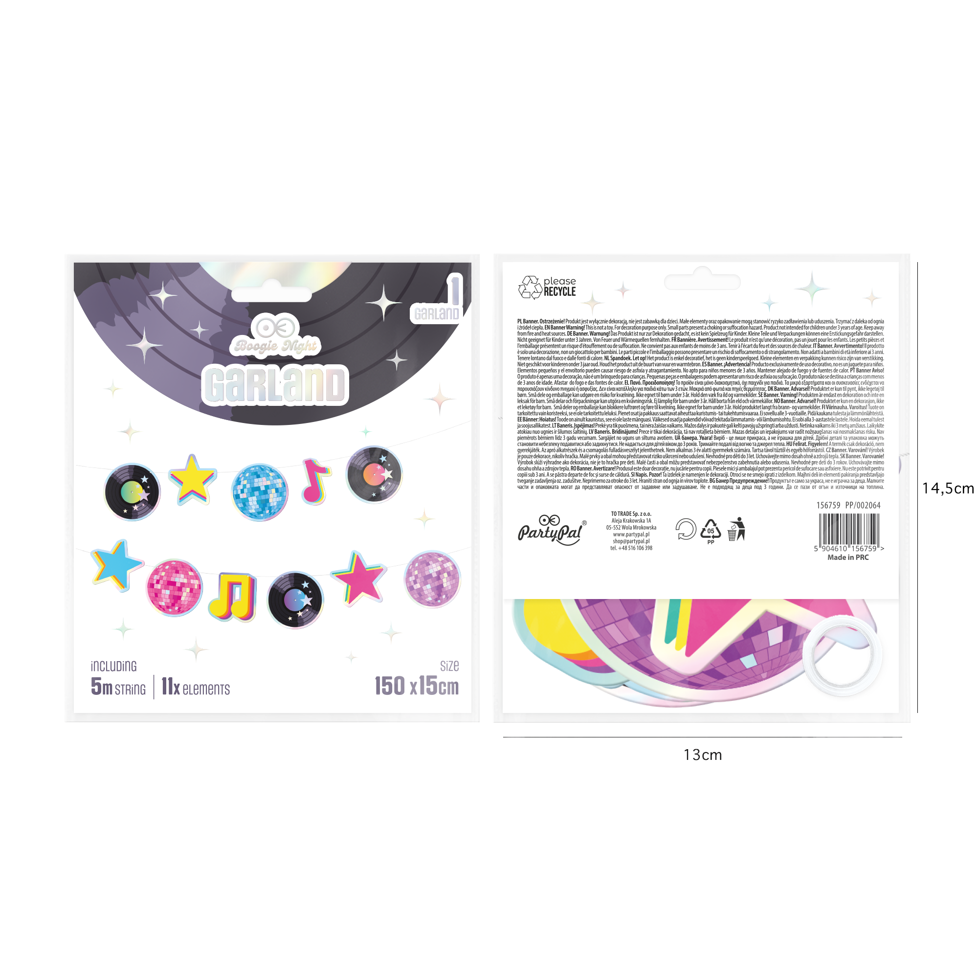 • Wymiary elementów: płyty (6 szt.): średnica 12 cm, nutki (2 szt.) - wysokość 10 cm, gwiazdki (3 szt.) - średnica 12 cm