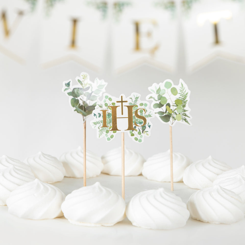 Toppery na tort komunijny Eukaliptus 5szt. zestaw