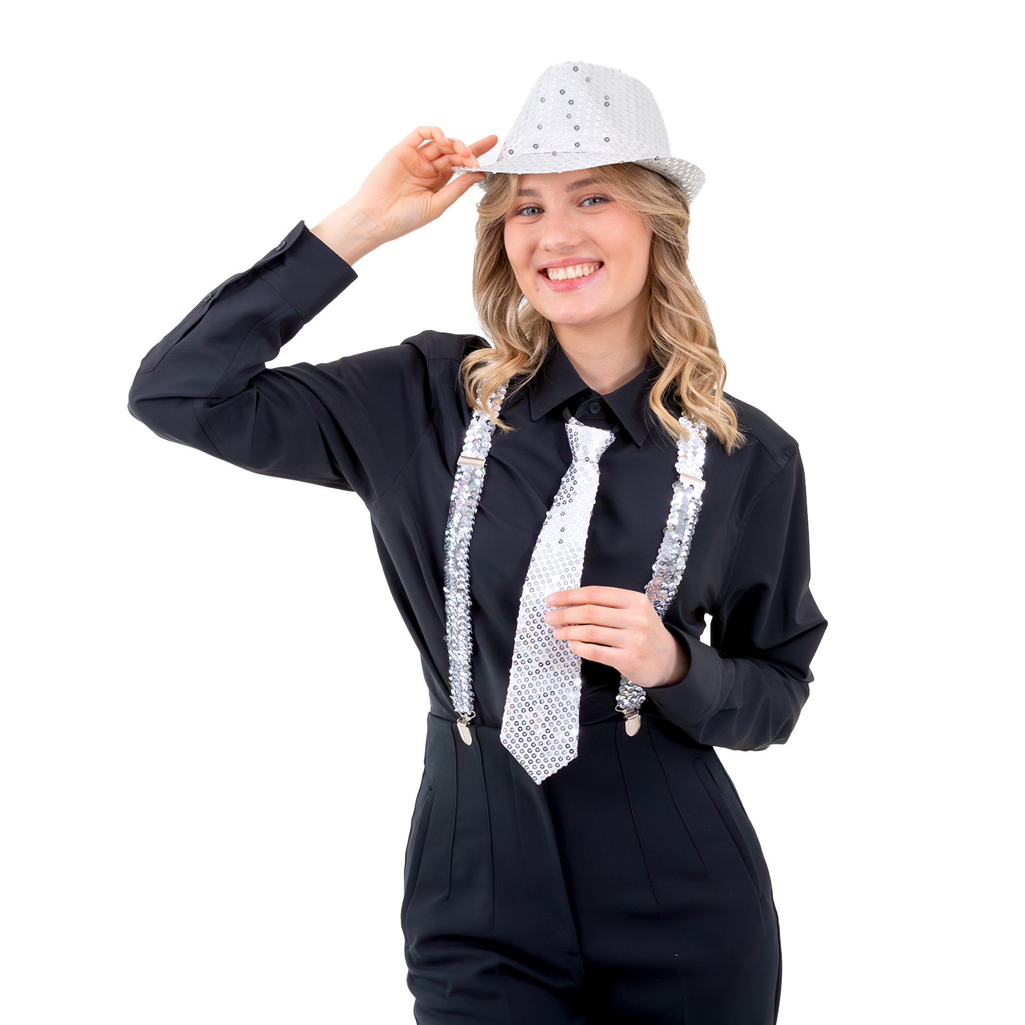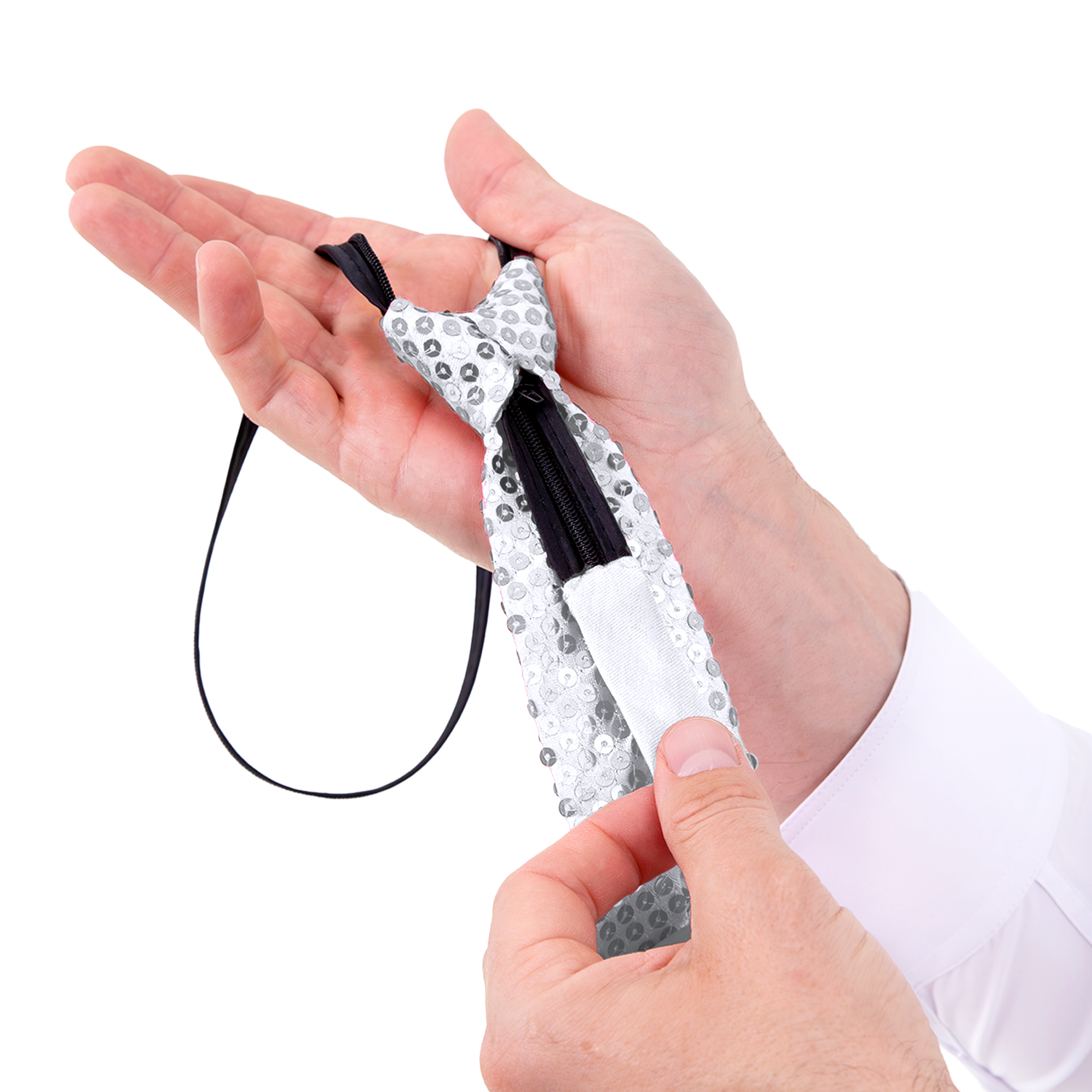 Krawat cekinowy srebrny