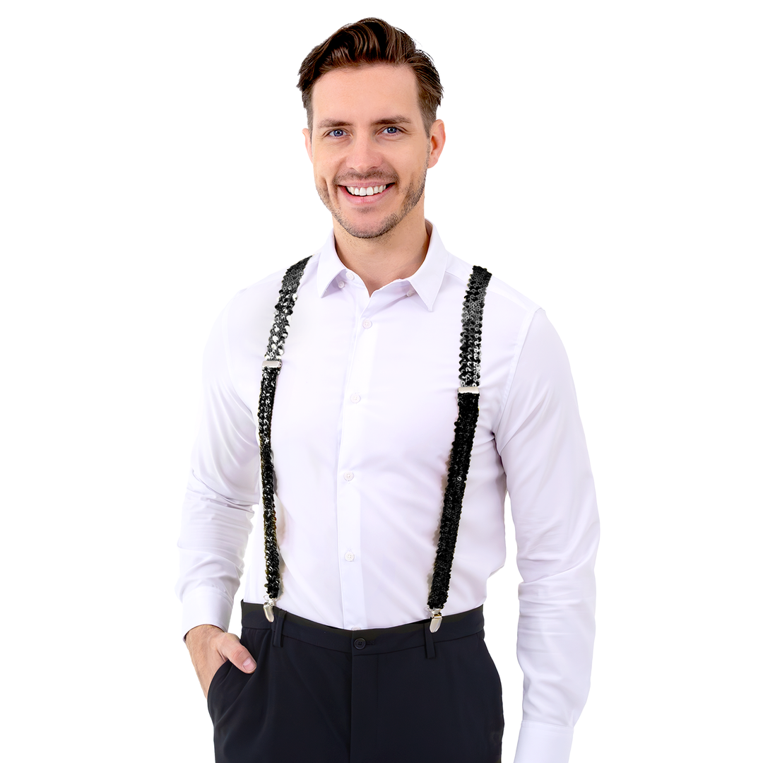 Szelki do spodni cekinowe czarne