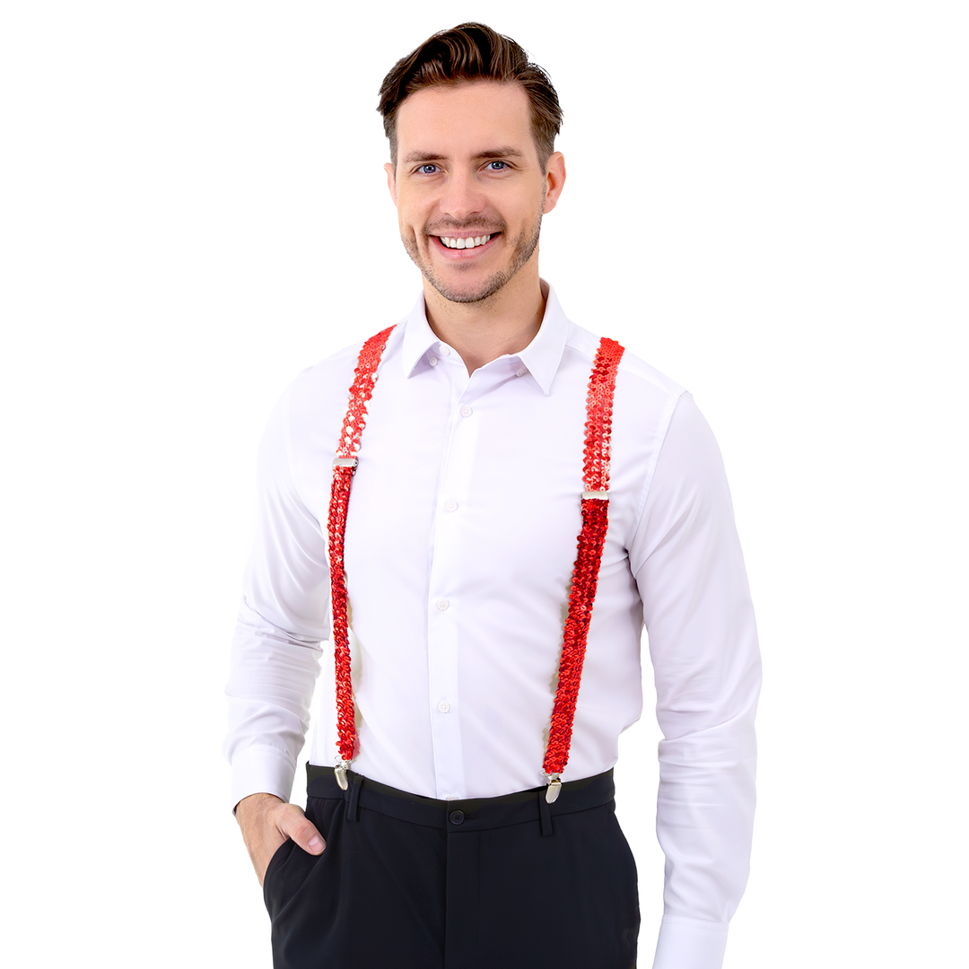 Szelki do spodni cekinowe czerwone