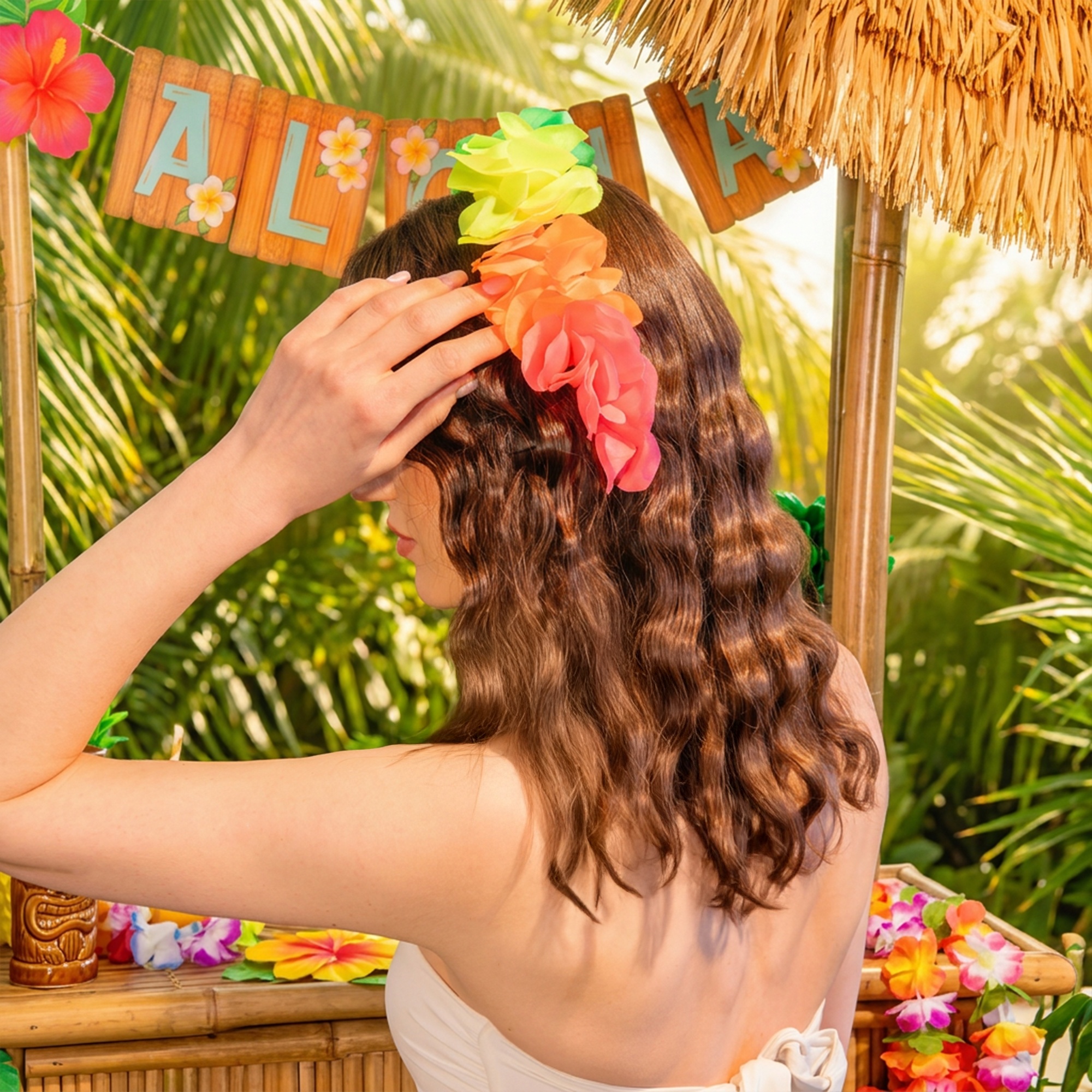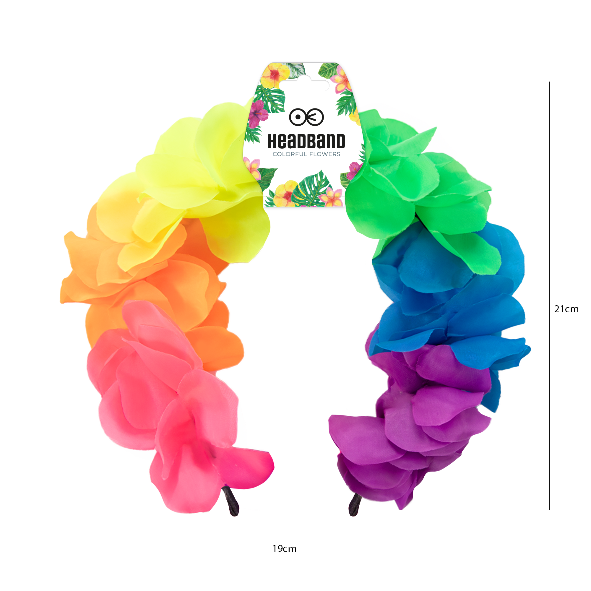 Opaska hawajska kolorowa to efektowny dodatek, który doskonale uzupełni każdą stylizację na imprezę w tropikalnym klimacie. Wykonana z materiałowych kolorowych kwiatów, które przyciągają wzrok, a intensywne kolory świetnie komponują się z innymi dekoracjami i akcesoriami w stylu hawajskim.