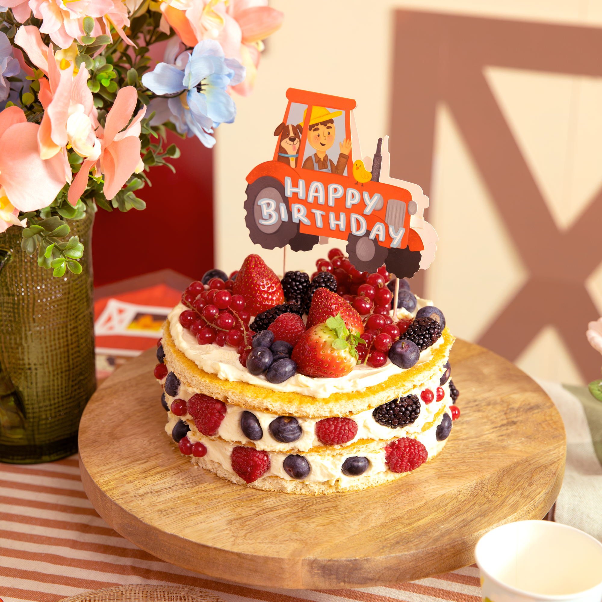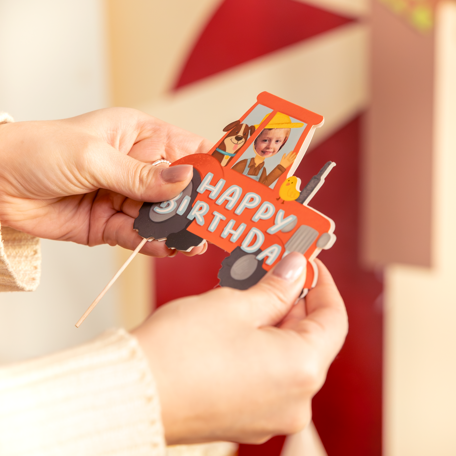Topper w kszt.ałcie traktora to idealna dekoracja na przyjęcie dla małego fana farmy. W środku znajduje się miejsce na zdjęcie – wystarczy odkleić folię ochronną z taśmy, włożyć fotografię w wycięcie i złożyć topper, aby stać się prawdziwym farmerem. Świetnie sprawdzi się na urodzinach, imprezach tematycznych i wiejskich przyjęciach.