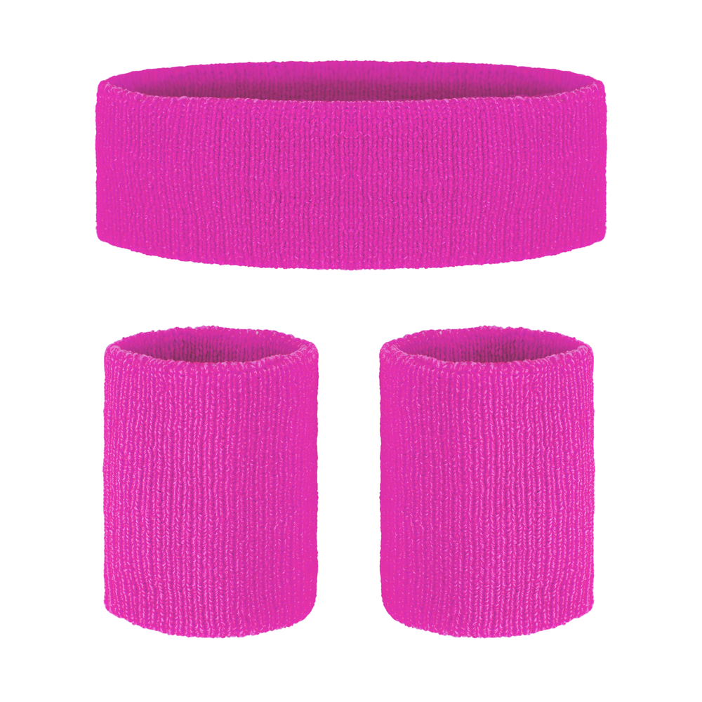 Opaski sportowe i przeciwpotne neonowe różowe - zestaw