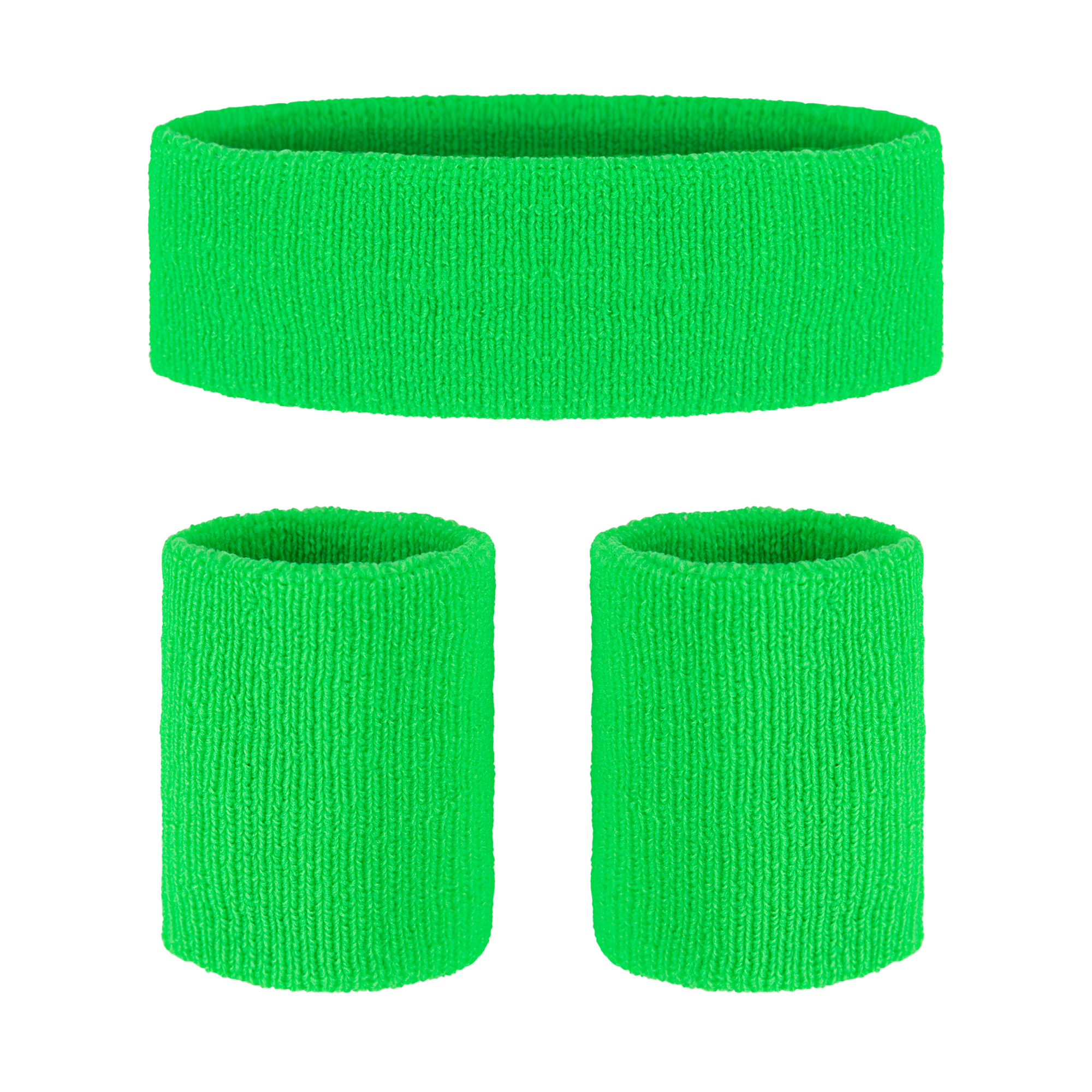 Opaski sportowe i przeciwpotne neonowe zielone - zestaw