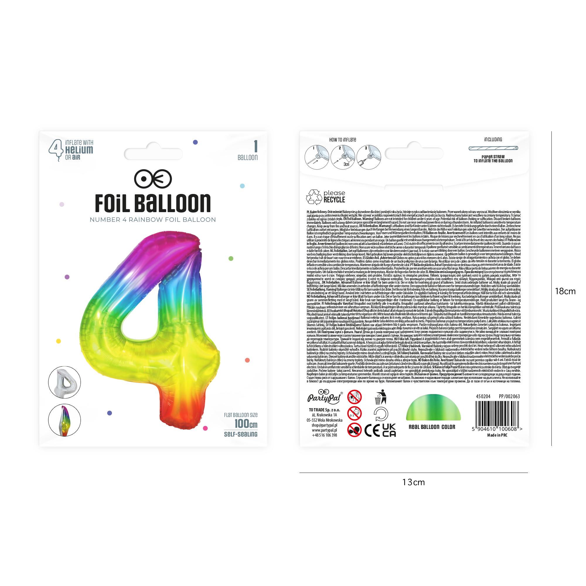 Balon foliowy cyfra 4 tęczowy 100cm - OUTLET