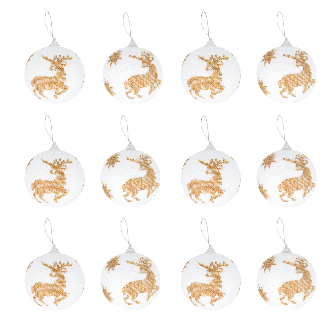Świąteczne Bombki Renifery Juta 12 szt. - OUTLET