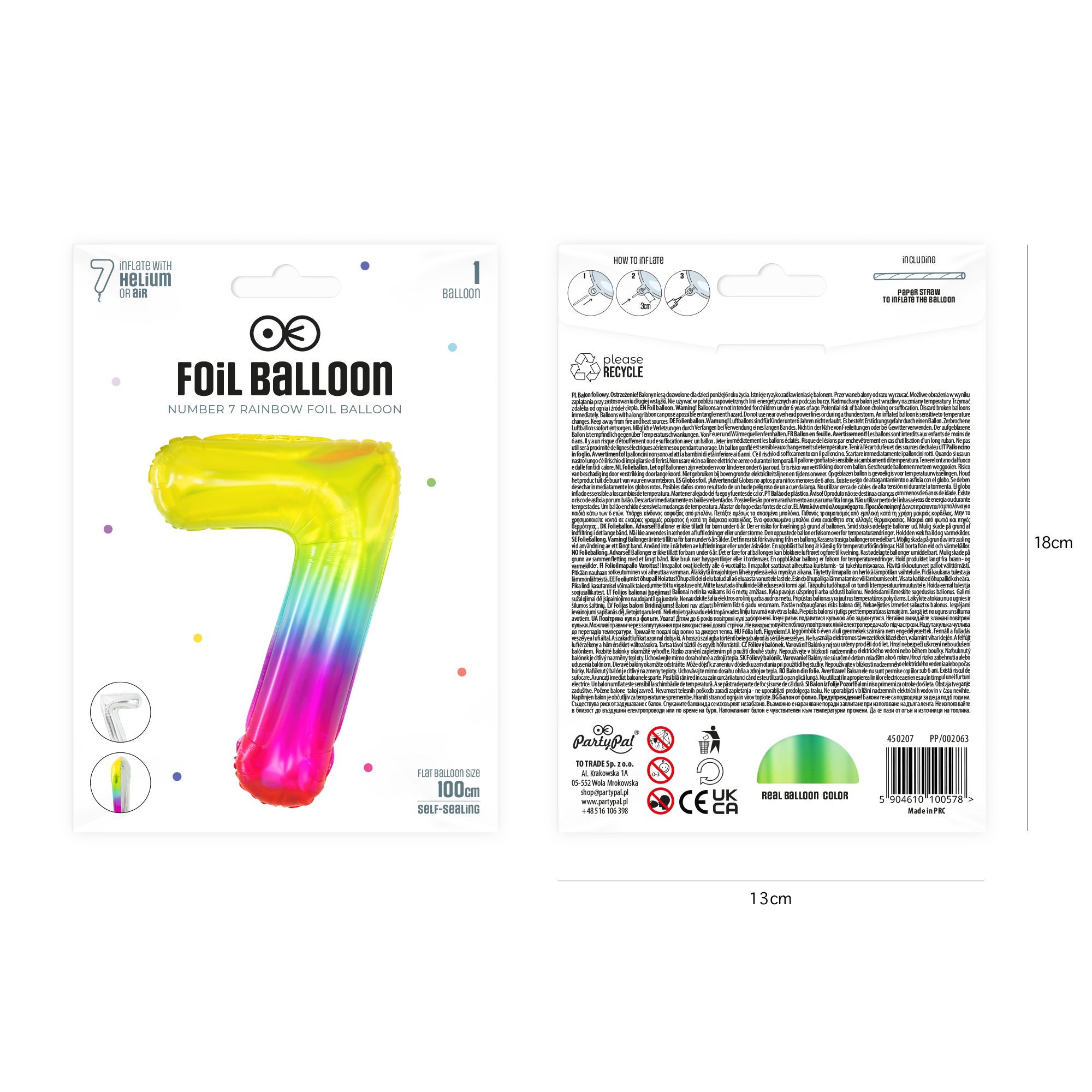 Balon foliowy cyfra 7 tęczowy 100cm - OUTLET