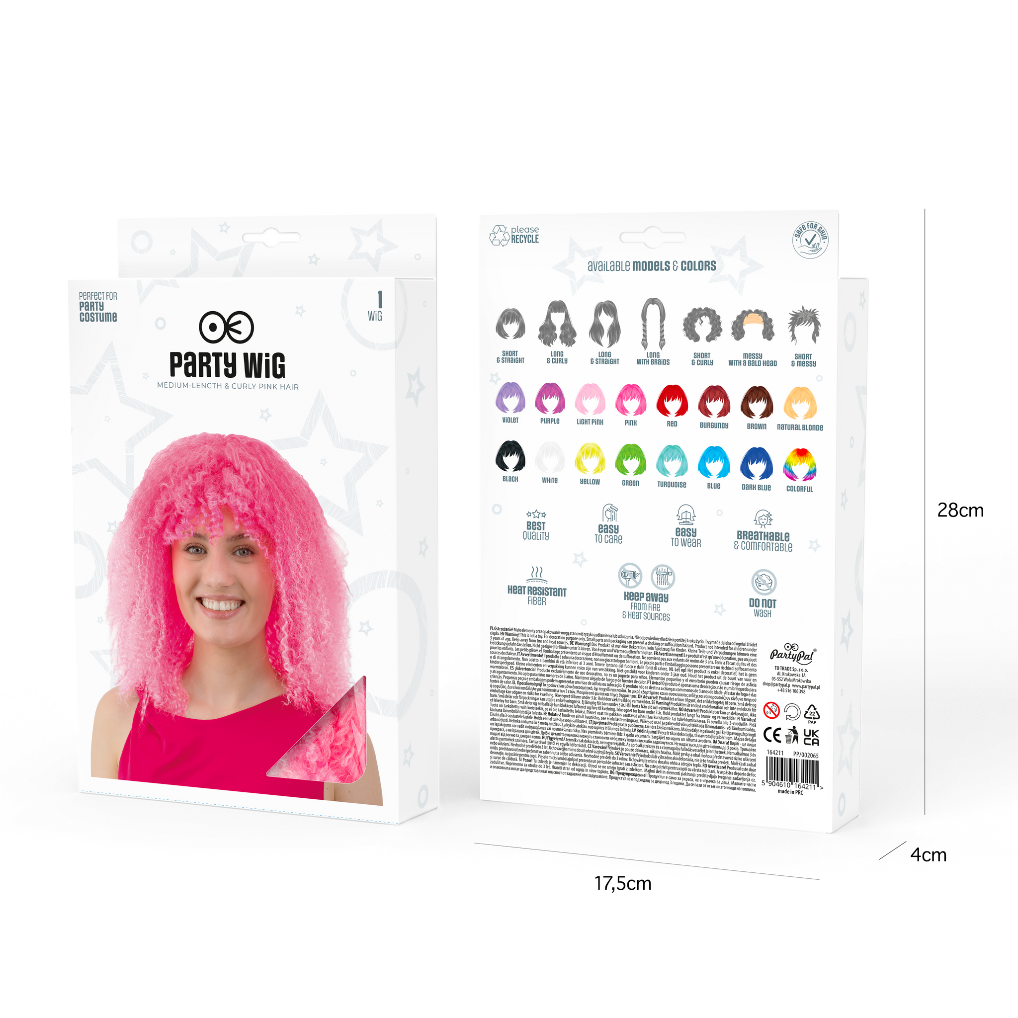 Peruka imprezowa włosy średniej długości kręcone różowe