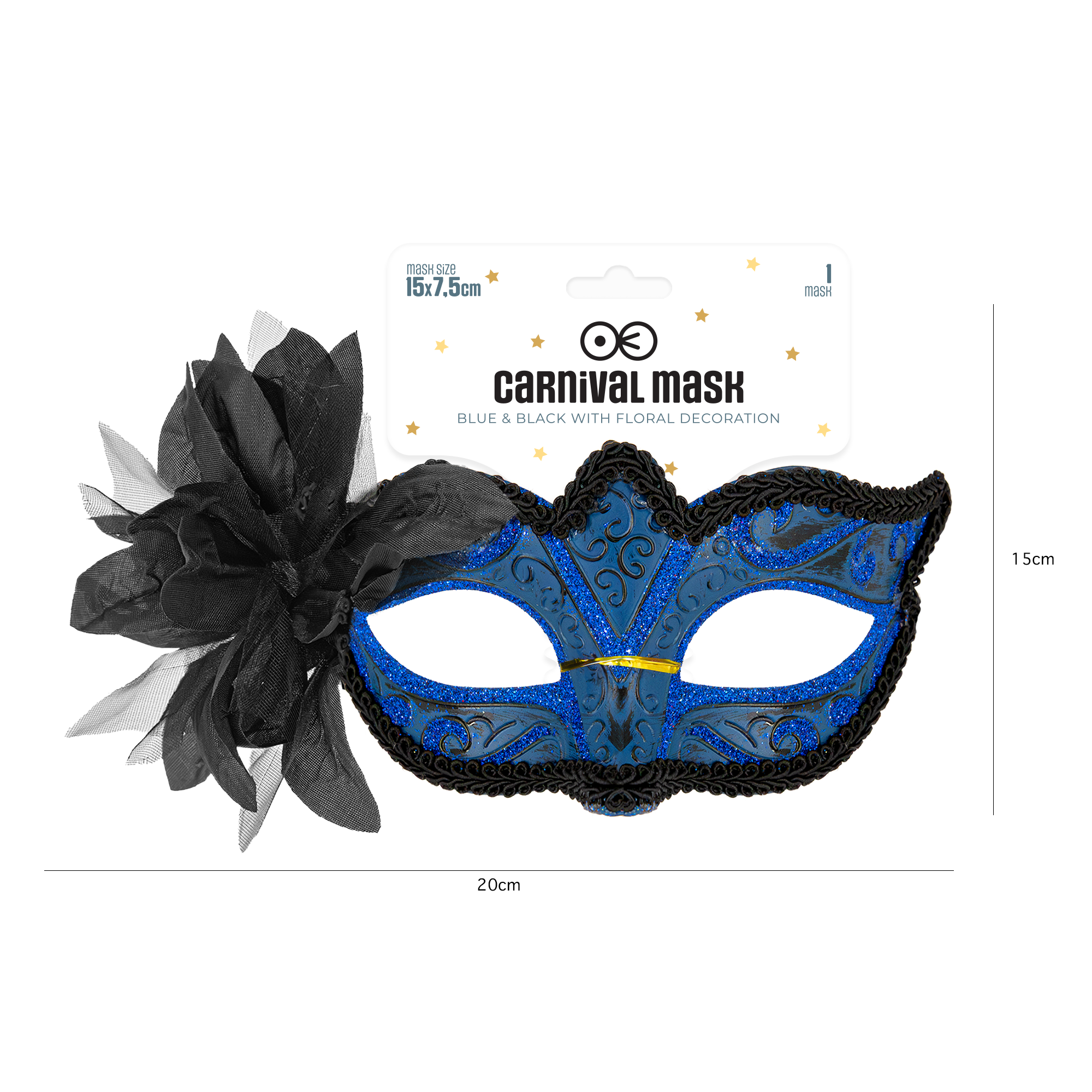 Maska karnawałowa z kwiatem niebieska