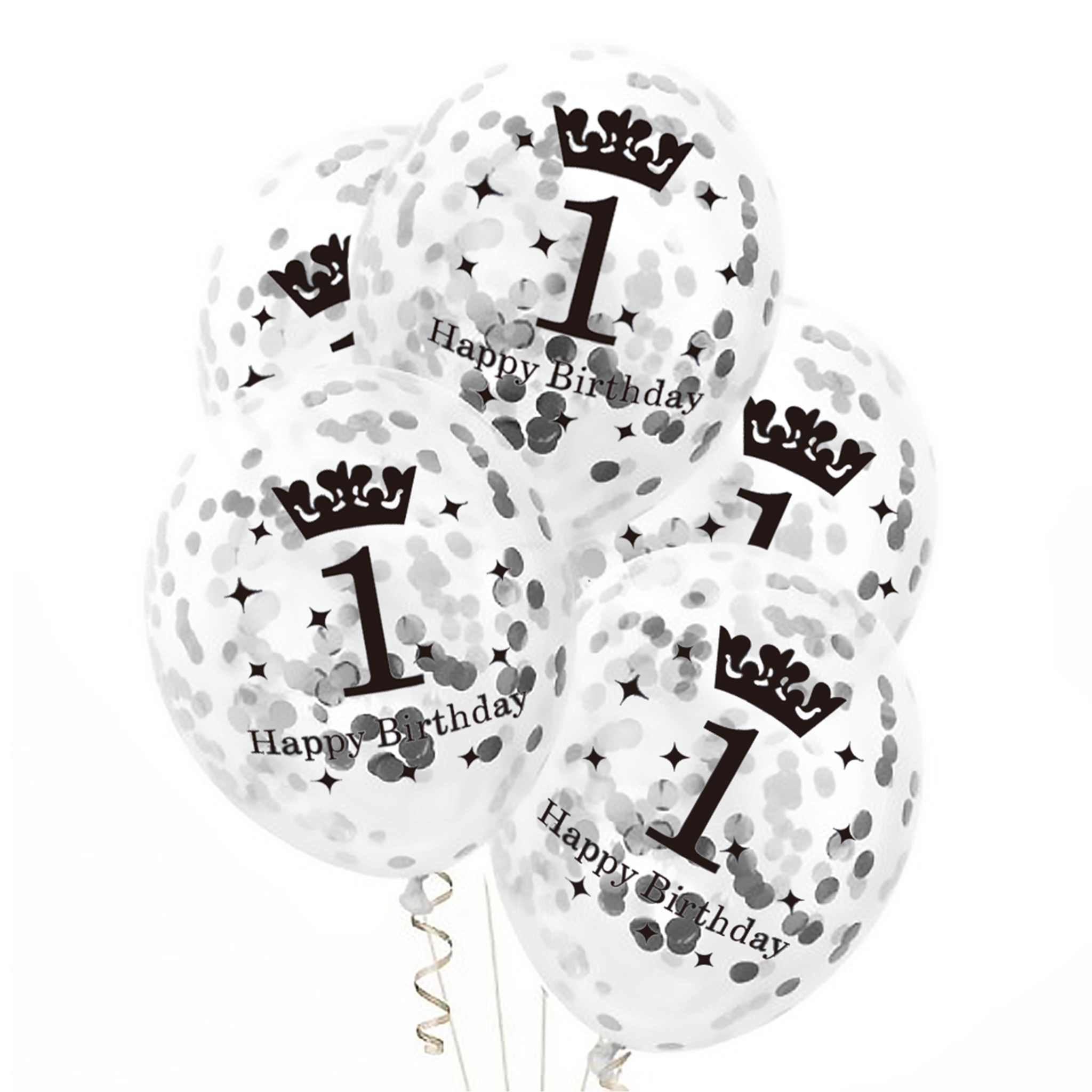 Balony z konfetti na roczek Happy Birthday srebrne 12cali 100szt