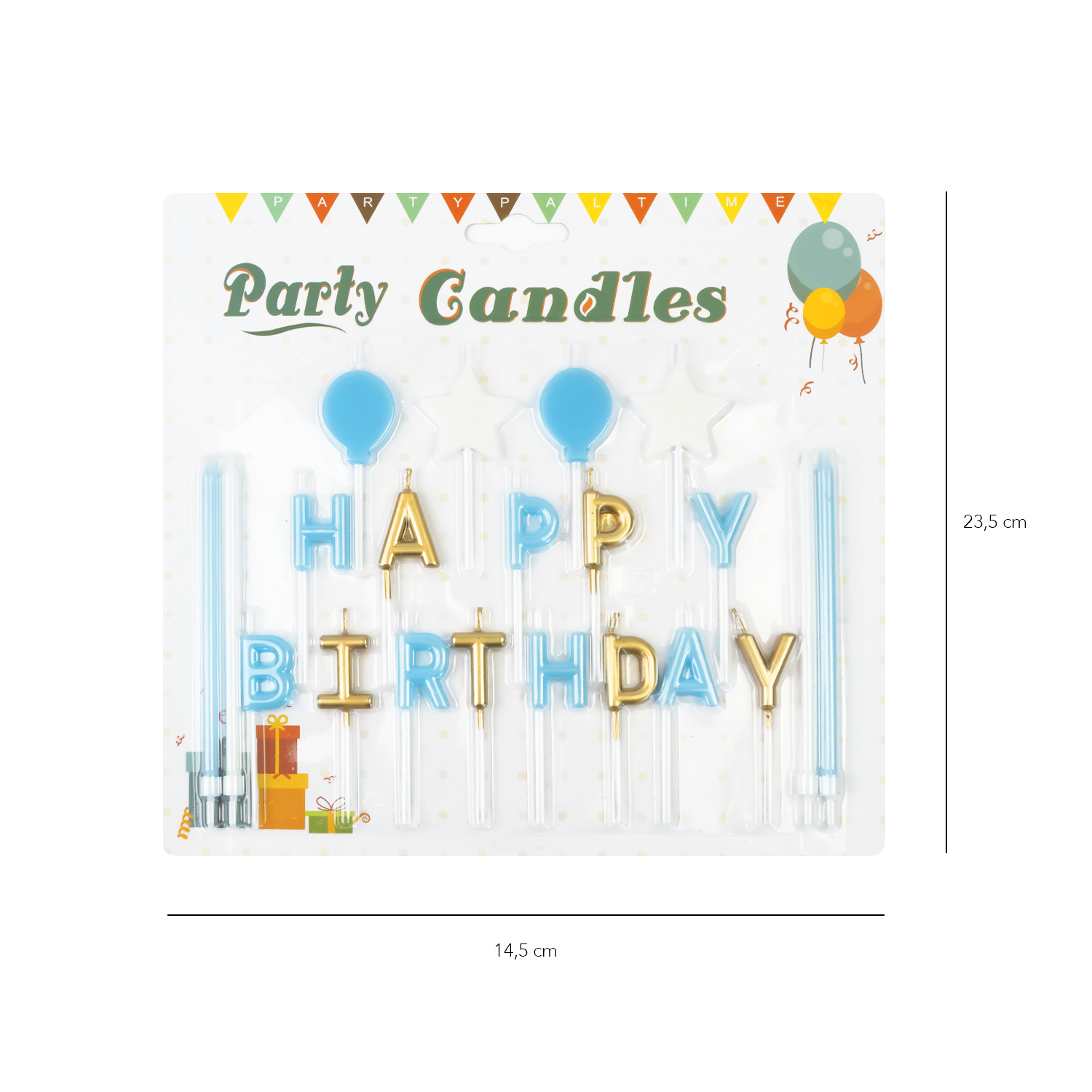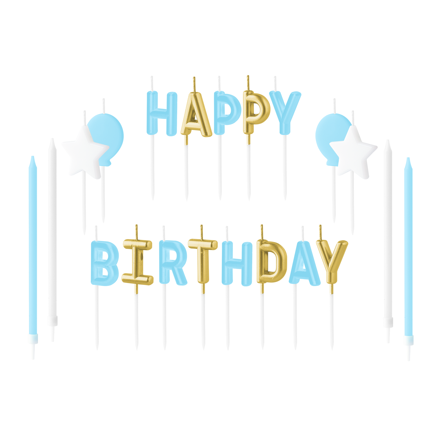 Świeczki urodzinowe literki Happy Birthday niebieskie