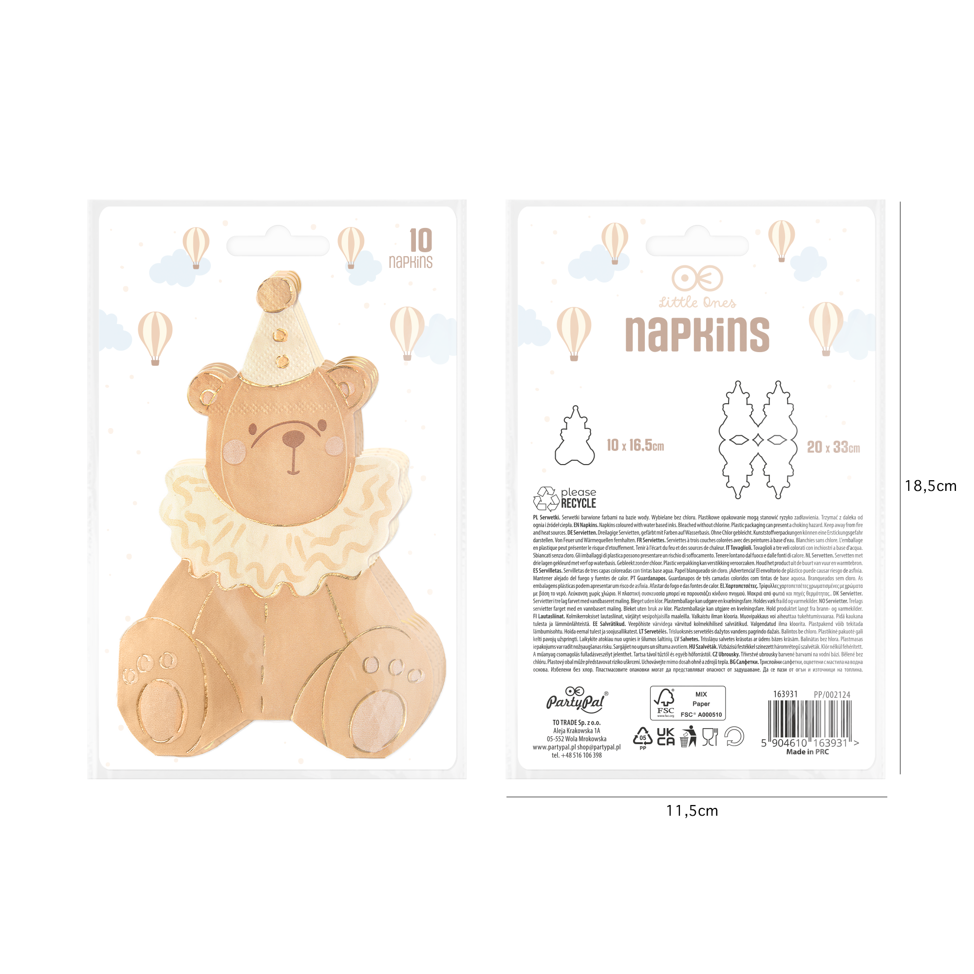 Urocze serwetki w kszt.ałcie misia.