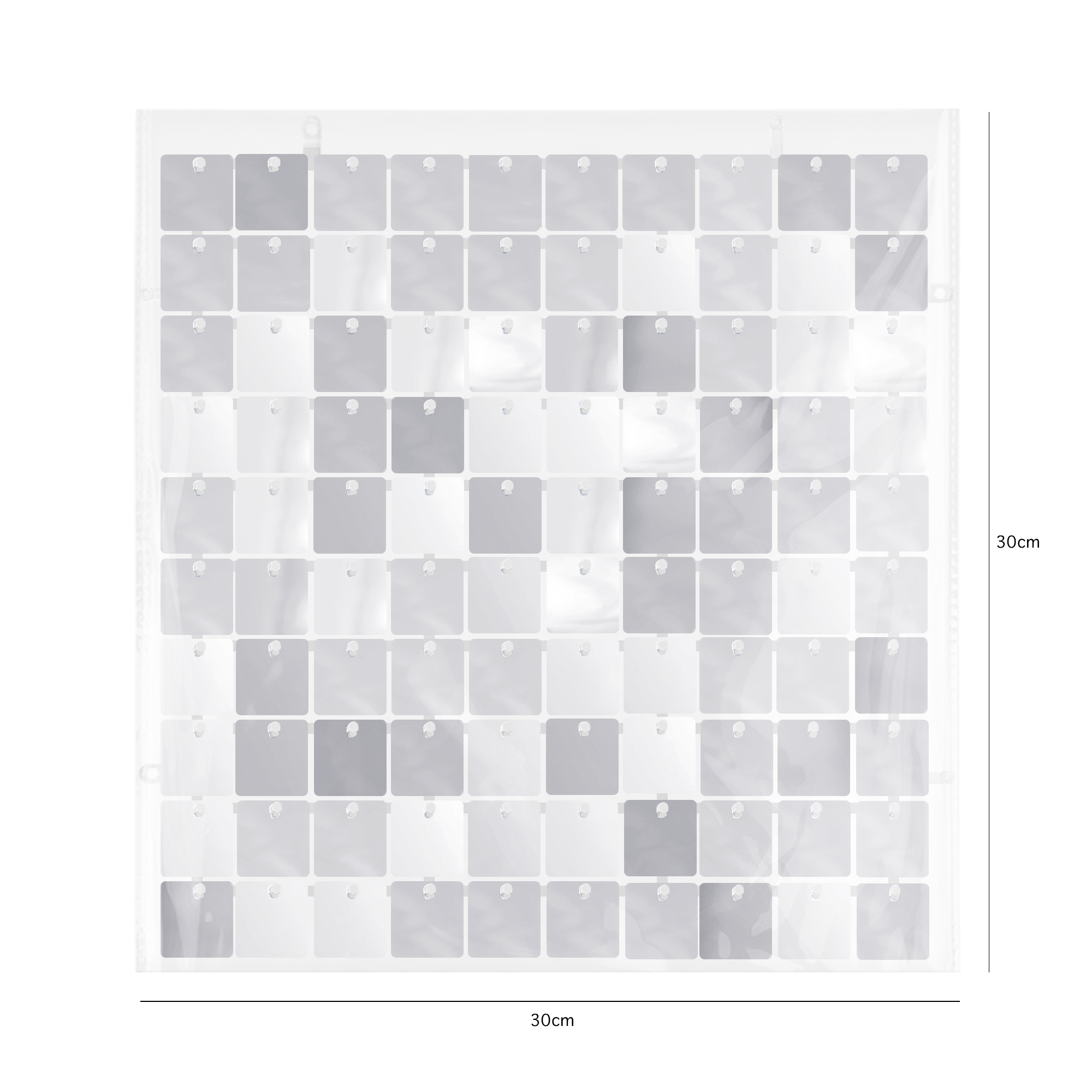 Seria paneli dekoracyjnych, dzięki którym można stworzyć atrakcyjne tło do sesji zdjęciowej lub na wystrzałową imprezę. Każdy panel składa się ze 100 pojedynczych, luźno zawieszonych blaszek, które dają niezwykle ciekawy, trójwymiarowy efekt poruszając się na skutek ruchu powietrza. Cekinowa struktura i połysk sprawiają, że efektownie odbijają światło. Idealne na wesele, urodziny, Sylwester czy zabawę karnawałową.